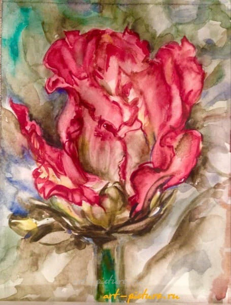 Какое восхитительное произведение! Нежные оттенки розового и красного действительно создают атмосферу легкости и романтики. Акварельная техника передает такую живость, что цветок кажется почти живым — будто вот-вот распустится!
