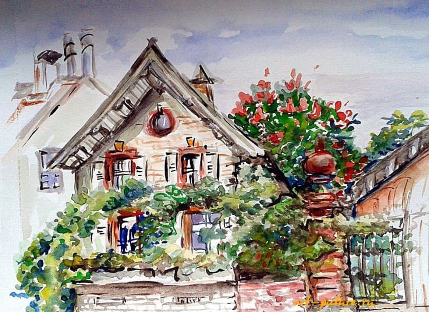 Когда я вижу такие акварельные картины с уютными домиками, у меня сразу возникают теплые чувства. Это напоминает о детстве, о том, как мы проводили выходные на даче или в бабушкином доме, где всё приносило успокоение. В нашем быстром мире такие образы напоминают о том, что есть место для покоя и простоты.