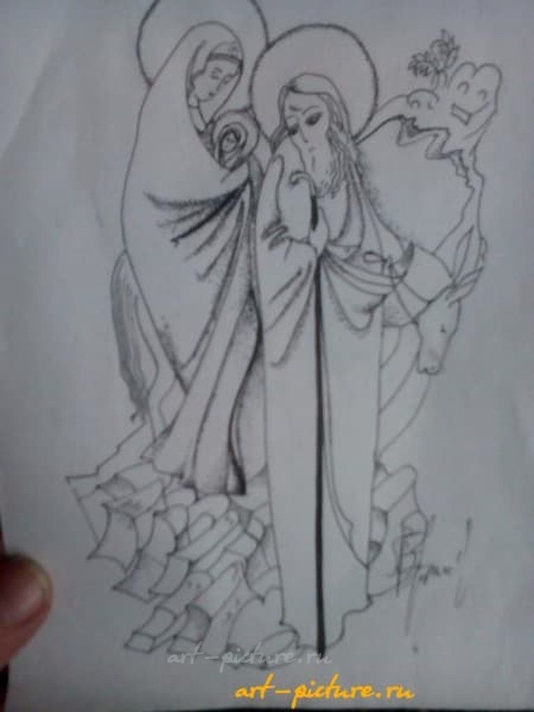 Какой красивый и выразительный рисунок! Он действительно передает дух православной иконописи и вызывает чувство уважения к традициям. Символика с ослом и цветами добавляет глубины сюжетной линии, создавая ощущение особого света и благодати.