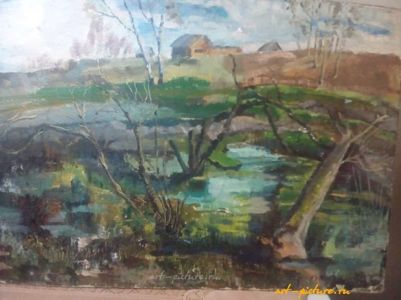 Этюд с натуры .Весна.Там ,где я жила.Весной даже болотце зацвело и покрылось Рим кой