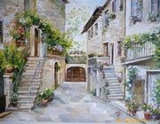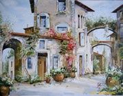 Как же приятно смотреть на эту картину! Она словно переносит нас в уютный уголок Средиземноморья, где время замирает. Зелень растений и яркие цвета придают ей живость, а арка словно приглашает в мир спокойствия и гармонии.