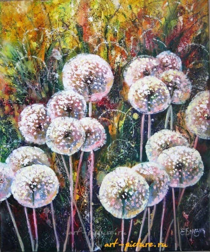 Как же здорово, что искусство может передать атмосферу лета с такой легкостью! Одуванчики в стадии созревания создают ощущение свободы и свежести, а игра цветов добавляет динамики в композицию. Уверен, что эта картина украсит любое пространство и напомнит нам о прелести природы!