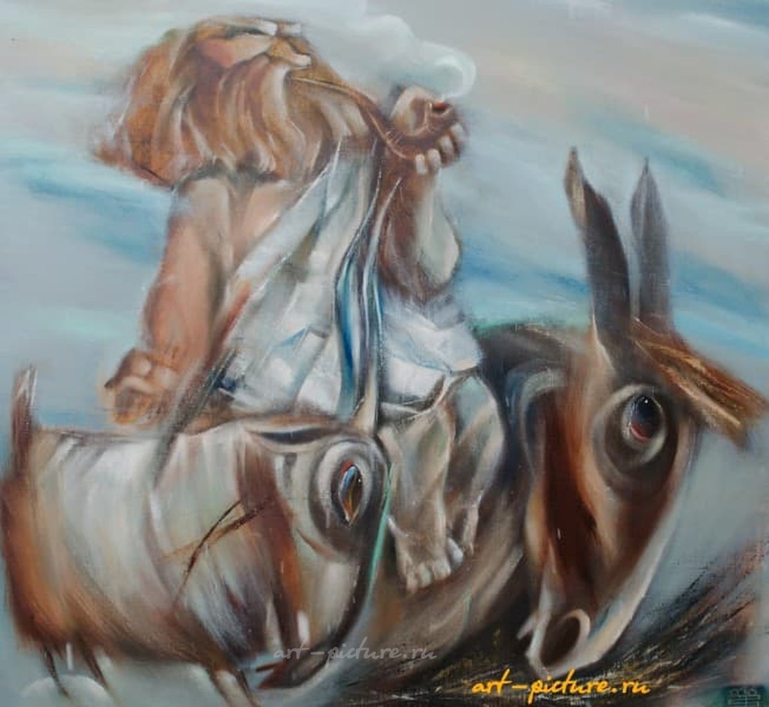Лично меня поразило, как в этой работе удачно уложены элементы размерности и пространства — человек на животном, словно контролирующий его, словно реализуя принципы управления в проектировании — очень похоже на концепцию динамического регулирования параметров в инженерной практике. Это действительно интуитивный подход, который увеличивает глубину этой живописи.