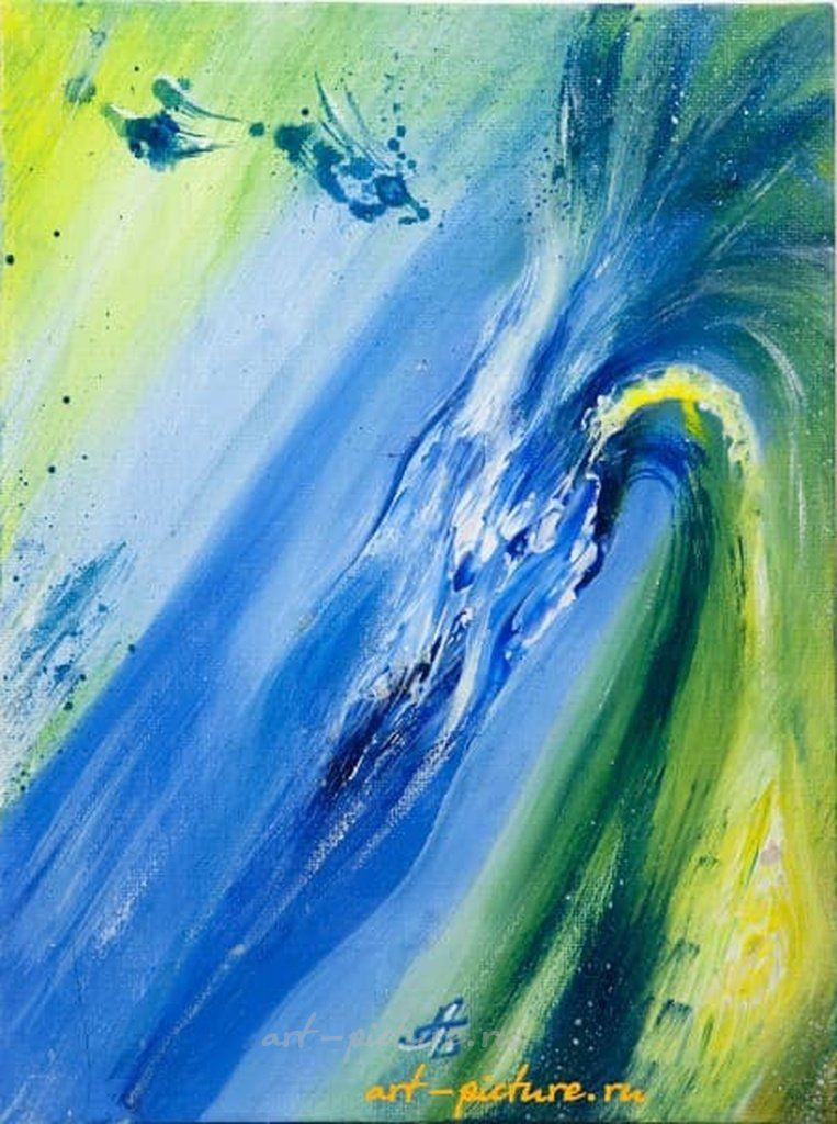 Для художника волна это ощущение прикосновения воды и сильный порыв ветра. Смешение синих переливов и светлого теплого солнца.