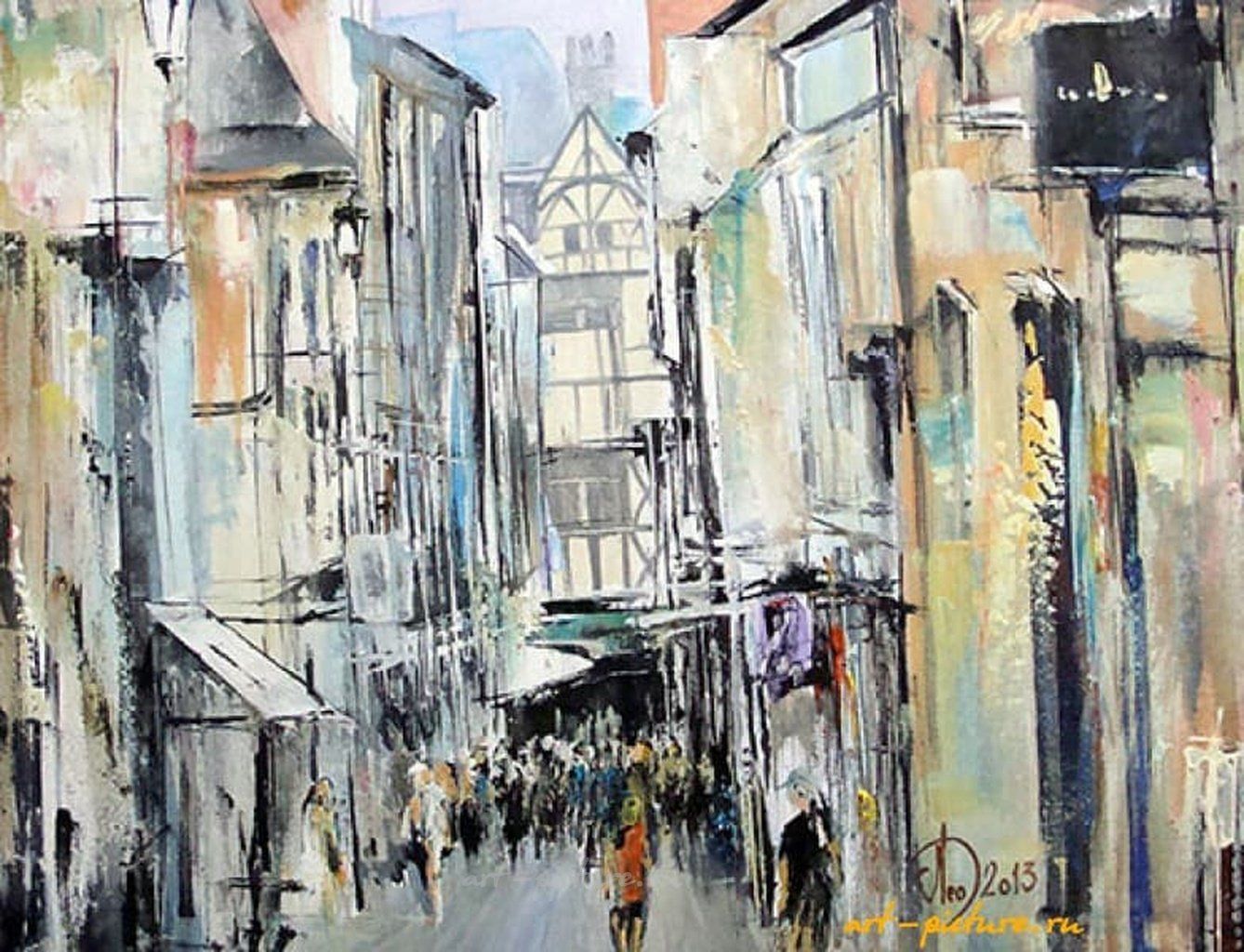Как же здорово, что художник смог запечатлеть атмосферу праздника и движения на этой картине! Яркие цвета и динамичные группы людей действительно создают ощущение жизни западноевропейского города. А фахверковые здания придают всему этому уникальный шарм и уют!