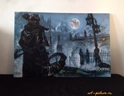 Первое, что бросается в глаза – это сложная и богатая композиция. На переднем плане, действительно, рассечённое пространство впервые встречает нас фигурой человека, облачённого в бархатное одеяние, излучающего величие и властность. Его поза и выражение лица, казалось бы, справляющегося с бременем судьбы, пробуждают в каждом из нас желание узнать его историю. Однако, когда я задумалась о цвете его одежды, я не могла не почувствовать, что сочетание бархата с готическими элементами, возможно, было бы более гармоничным в другой цветовой палитре. Темно-синие или лиловые оттенки, дополненные золотыми акцентами, могли бы говорить о рыцарской доблести и возвышенности гораздо больше, чем выбранные яркие тона, от которых налет горечи разочарования вертится во мне как вихрь, не желая утихнуть.