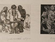 Офорт (фр. eau forte – крепкая вода) – разновидность гравюры, выполняемая на металле путем вытравливания азотной кислотой (для железа) или хлорного железа (для меди). Разновидность глубокой печати. На полированную металлическую пластину (цинк, сталь, медь) наносится специальный грунт (офортный лак), устойчивый к воздействию кислот. Далее на «доске» специальной гравировальной иглой процарапывается рисунок. Обратная сторона пластины защищается от воздействия реагента битумным лаком. После этого она помещается в кислоту для вытравливания. При этом в процарапанных местах появляются углубления. Время от времени пластину вынимают для просушки и покрытия части изображения лаком, а затем опять помещают в реагент. Путем изменения времени нахождения «доски» в кислоте регулируют глубину вытравленных контуров. После окончания процесса вытравливания лак удаляют посредством растворителя. Далее пластину покрывают красителем и протирают. В результате получается готовая для нанесения оттисков «доска». Данный способ, как можно заметить, проще, чем те, которыми выполняется резная гравюра по металлу или ксилография (гравюра по дереву). При необходимости могут быть получены штрихи разной ширины и глубины, что дает возможность выполнить максимально детализированное изображение, практически не затрачивая никаких усилий, так как основную работу берет на себя кислота. Описанный выше способ называется «травленый штрих» и считается наиболее распространенным. Изначально гравюры выполнялись единственно таким способом. Однако в разное время были изобретены и другие техники вытравливания. • Мягкий лак – метод, появившийся в XVIII веке. Позволяет получать более свободный и легкий штрих, не такой резкий сухой, как при использовании иглы. Пластину покрывают мягким офортным лаком, что позволяет использовать достаточно слабую кислоту. Далее на нее накладывается бумага, на которой карандашом выполняется рисунок. При этом мастер может использовать жесткий или мягкий грифель, а также менять силу нажатия. В результате лак в местах контура изображения пристает к бумаге с обратной стороны. Эта техника является самой быстрой. • Акватинта (фр. aquatinta – окрашенная вода). Изобретена в 1760 г. во Франции Жан-Батист Лепренсом. При выполнении гравюр пластина частично покрывается канифолью и помещается в кислоту. Далее вынимается и снова частично покрывается кислоупорным составом. Техника позволяет создавать тональные плоскости большого диапазона. Считается наиболее распространенным способом выполнения тона в офорте. • Лавис (фр. lavis – растушевка). Также изобретен Лепренсом в XVII веке. На полированную поверхность, засыпанную акватинтой, наносится рисунок травящим составом, в который входит крепкая 40%-я кислота и красящее вещество, которое позволяет видеть рисунок в контурах и определять его по глубине тона. Рисование производится акварельными кистями или кистями из стекловолокна. Чем гуще положен травящий состав, тем глубже сила тона. Рисование свободное, без необходимости покрытия кислотоупорным лаком, что исключает появление на оттиске жестких границ у тоновых пятен. При качественной печати тиражная гравюра создает полное впечатление уникального акварельного рисунка. Подмена одной графической техники другой не всегда бесспорна, и художники, работающие