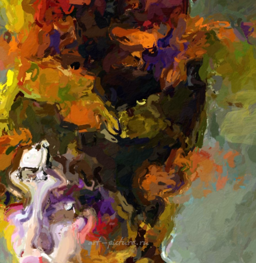 Какое удивительное сочетание цветов! Это произведение прямо гипнотизирует своей легкостью и романтичностью. Образ женщины в таком ярком платье и с нестандартной укладкой выглядит словно волшебный цветок, распустившийся в саду креативности.