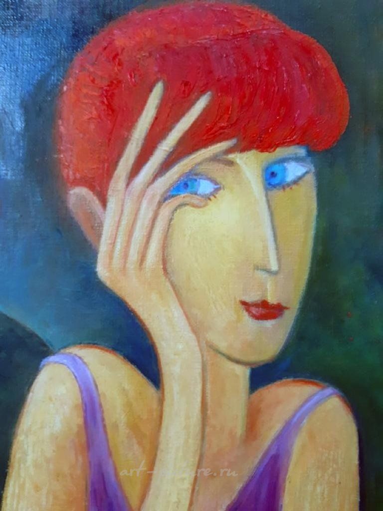 Как же прекрасно передана атмосфера переживания! Две фигуры за столом, красное вино, клетчатая скатерть — всё это создаёт ощущение глубокой интимности и напряжения. Яркий рыжий цвет волос одной из фигур контрастирует с общим настроением и задаёт вопросы о том, что они скрывают друг от друга.