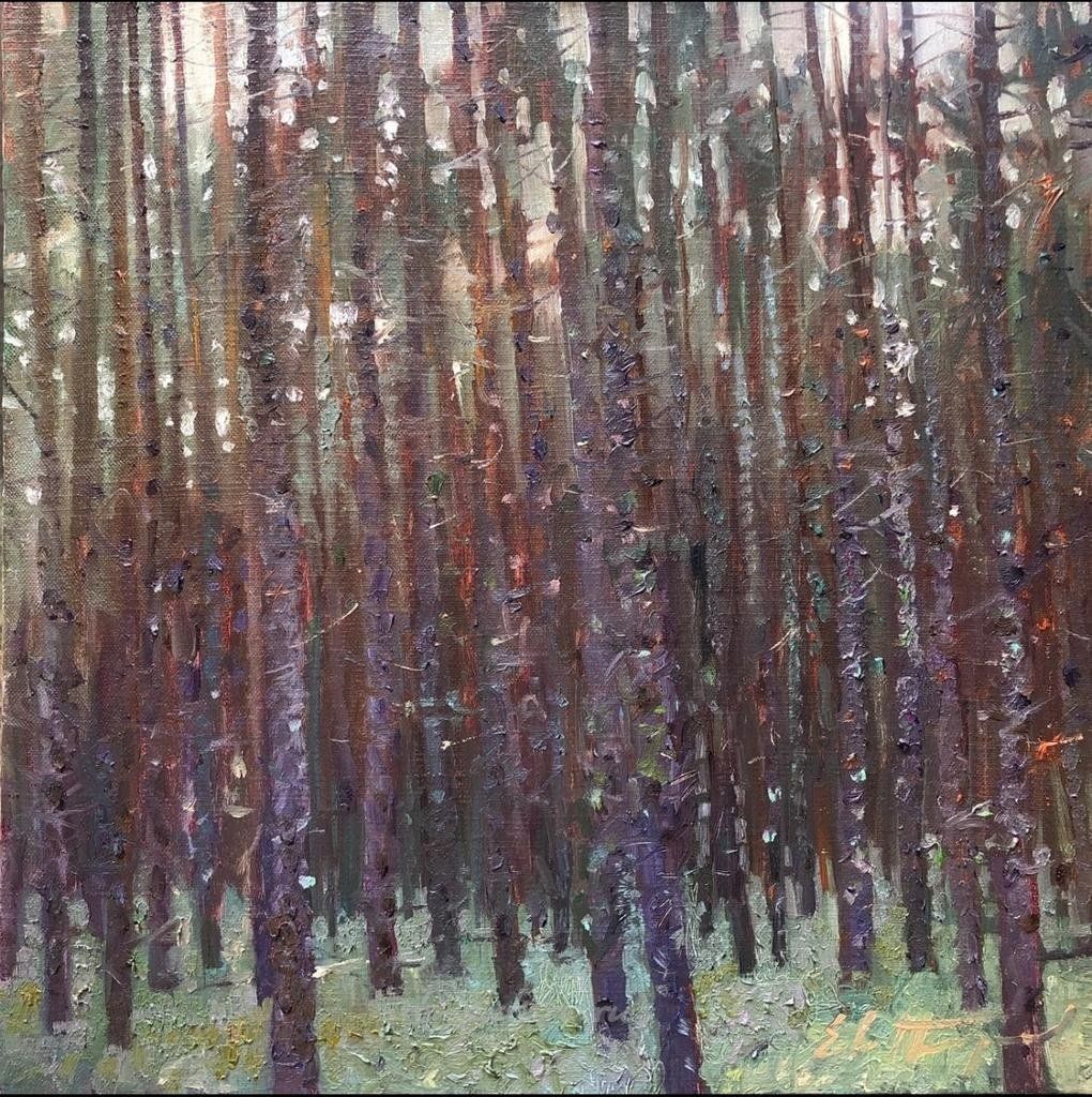 Стремление точно передать детали стволов деревьев и атмосферу леса может говорить о реалистичном подходе. Художник передает не только визуальные детали, но и ощущение погружения в природу.