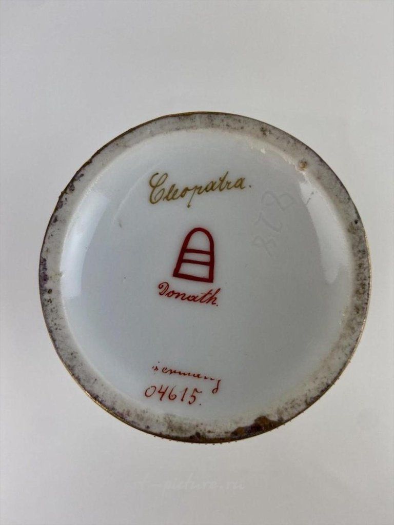 Около 1900 года был создан данный предмет. Его высота составляет 9,5 дюйма. Предмет находится в хорошем состоянии. Его стоимость оценивается в диапазоне от $1.000 до $1.200.