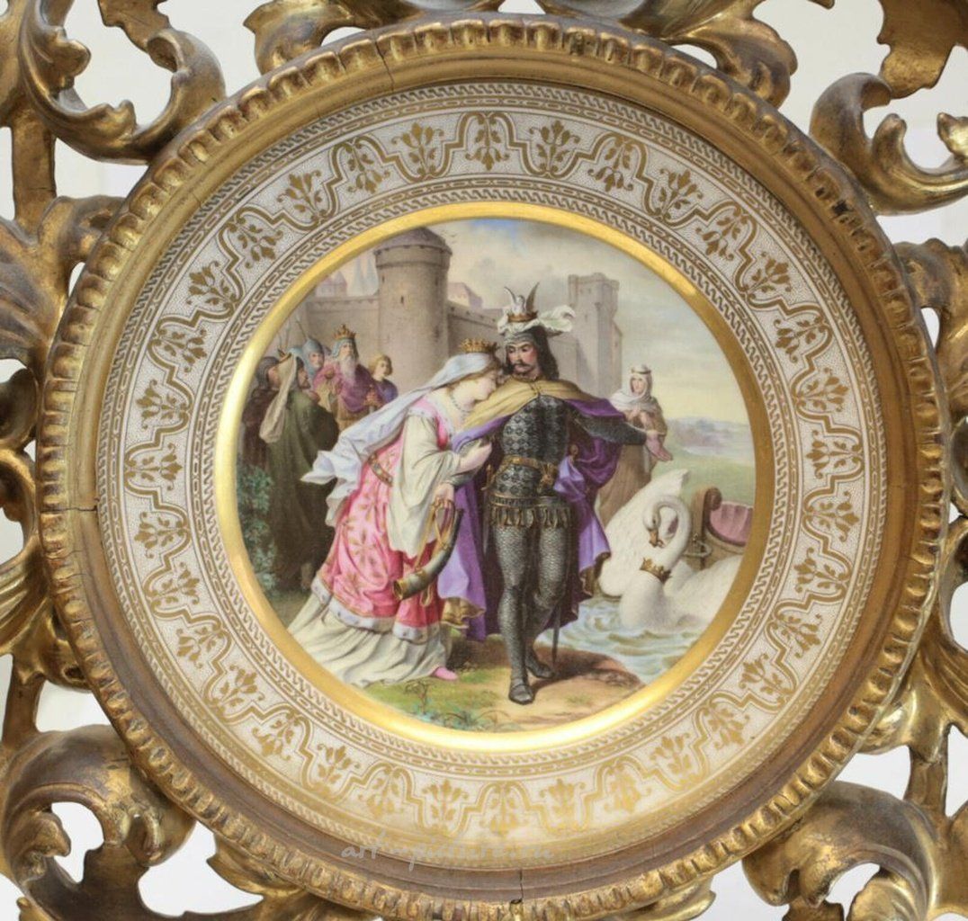 Продаётся роскошная венская фарфоровая сервировочная тарелка ручной росписи, изготовленная около 1900 года. На центральной части тарелки изображен немецкий литературный персонаж - прощание Логенрина. Тарелка оформлена в деревянную раму из золоченого гипса "Флорентийский гельо". На оборотной стороне имеется маркировка Royal Vienna. Вес составляет примерно 3 фунта. Размеры тарелки примерно: диаметр 9.5 дюймов, а размер рамы: диаметр 17 дюймов. Доставка по России доступна, для получения информации обратитесь к нам.