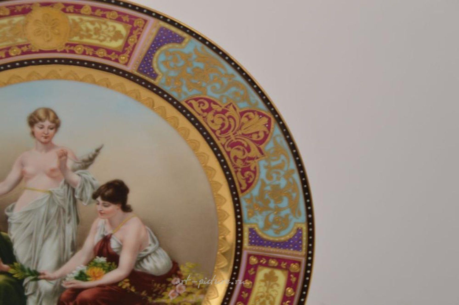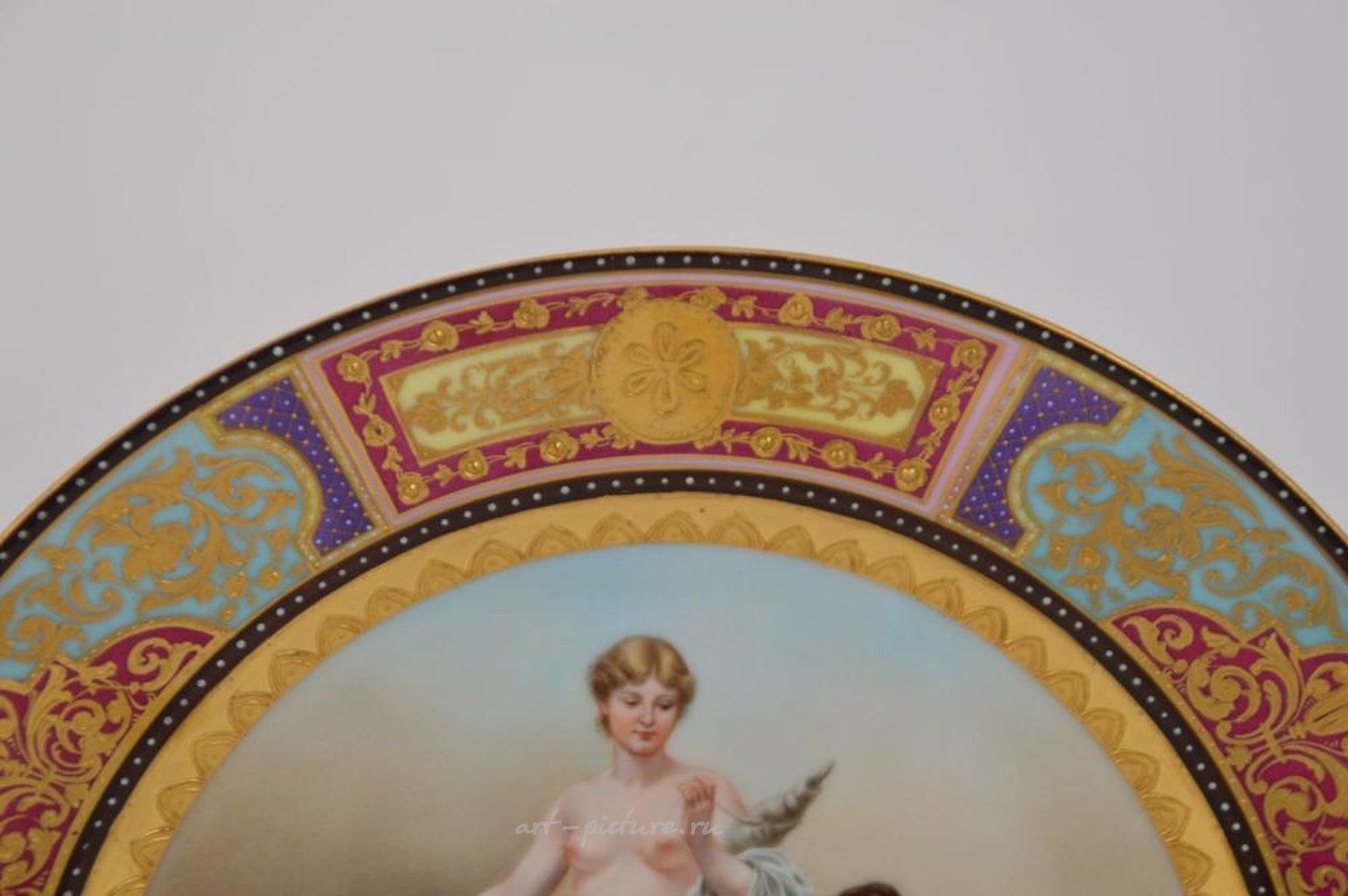 Королевский фарфоровый шкафчик Венской мануфактуры с подписью художника и отметкой пчелиного улья на обратной стороне. Состояние: повреждений не обнаружено. Диаметр 9 1/2 дюйма.