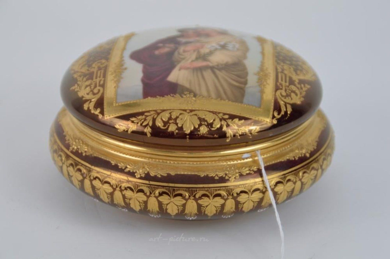 Королевская Расписная фарфоровая шкатулка . Состояние: отсутствуют повреждения. Размеры 6 дюймов на 3 дюйма.