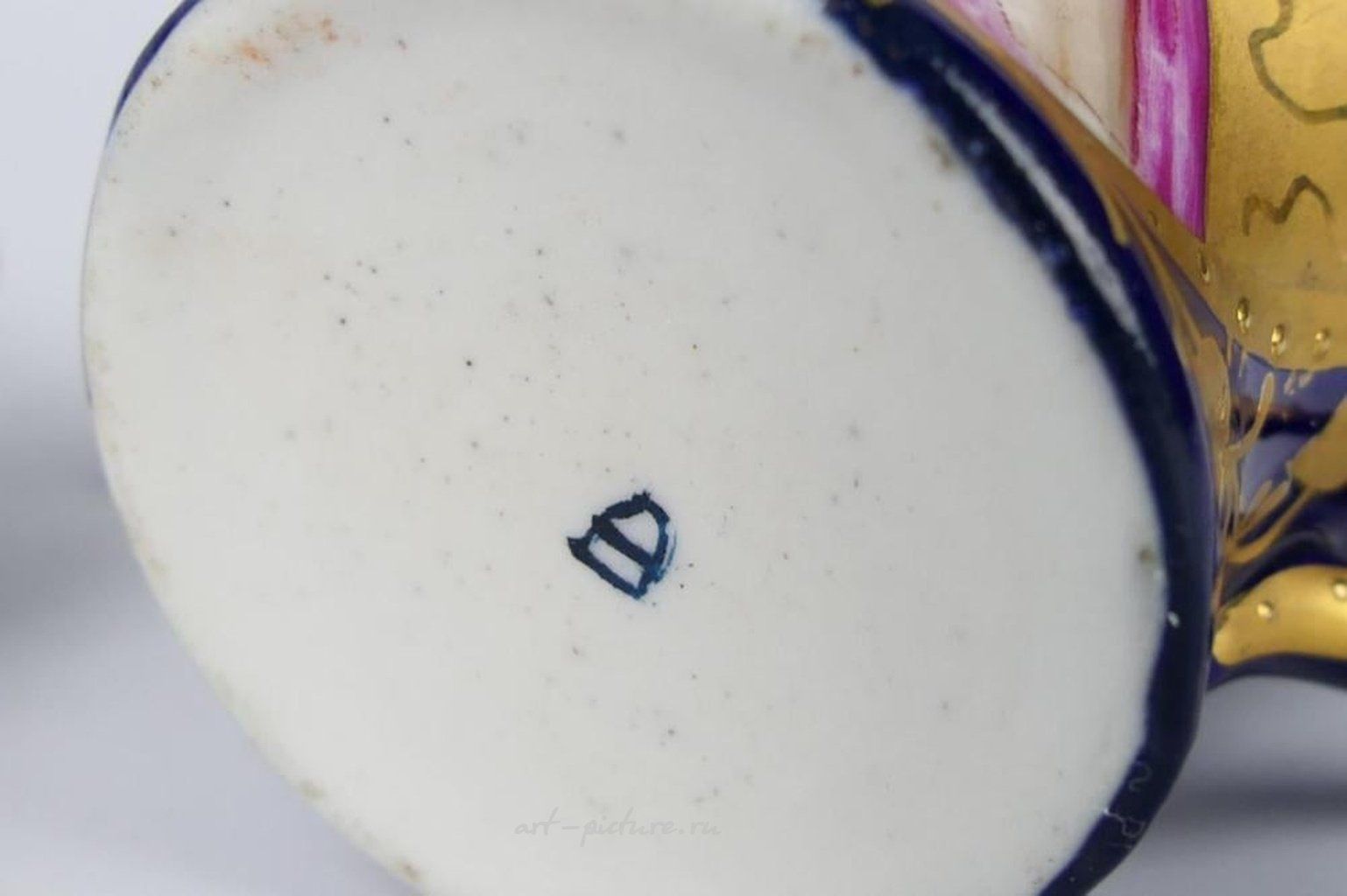 Чашка имеет высоту 2 1/2 дюйма, а блюдце - ширину 4 дюйма. Изображение на нём представляет красивую викторианскую женщину.