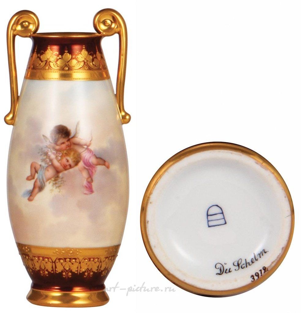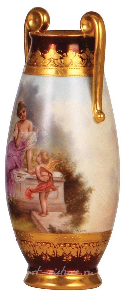 Ваза имеет высоту 8,8 дюйма. Ее уникальность заключается в том, что она выполнена вручную с использованием росписи. На вазе присутствует пометка в виде пчелиного улья, указывающая на ее принадлежность к типу "Ройаль Вена". На вазе также присутствует подпись художника Вагнера. Сама роспись представляет собой сложную сцену с изображением женщины и купидона. На обратной стороне вазы расположены два путти. Качество живописи и сама ваза безупречны, находясь в идеальном состоянии.