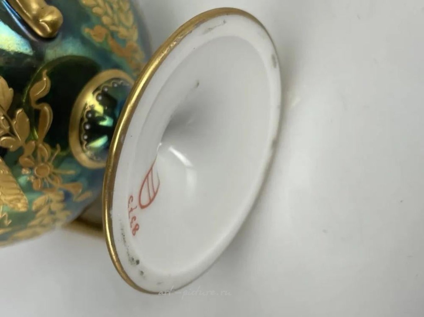 Около 1900 года была создана чашка, которая имеет следующие размеры: диаметр - 8,9 см, высота без крышки - 7,7 см. Крышка имеет диаметр 9,2 см. Блюдце имеет диаметр 15,3 см. Вся посуда находится в идеальном состоянии. Стоимость этого предмета оценивается в диапазоне от $1.500 до $2.000.