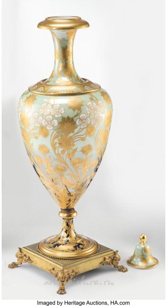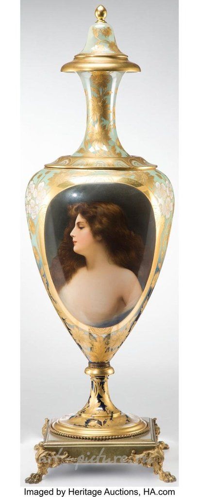Великолепная ваза из частично позолоченного фарфора в венском стиле, около 1900 года. Маркировка: Вагнер. Размеры: 33-3/4 x 11-3/4 x 11-3/4 дюйма (85,7 x 29,8 x 29,8 см). HID01801242017.