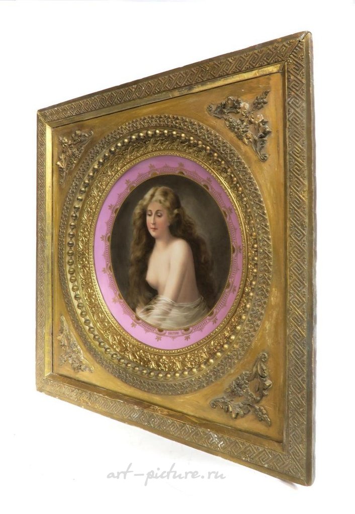 В 19-м веке была создана большая королевская ню-тарелка из Вены, которая была оформлена подписью Шиндлера. Размеры рамы составляют 27" x 27", а сама тарелка имеет диаметр 16".