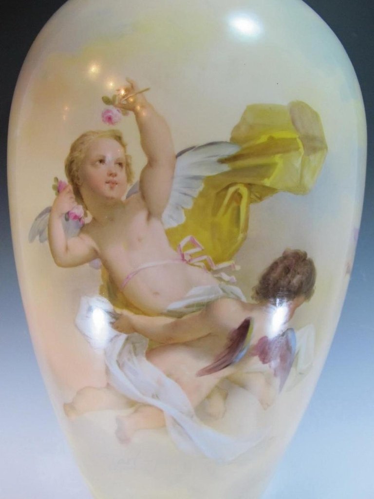 Огромная антикварная ваза из фарфора Royal Vienna с отметкой имеет следующие размеры: высота 32 3/4 дюйма, ширина 9 1/8 дюйма.