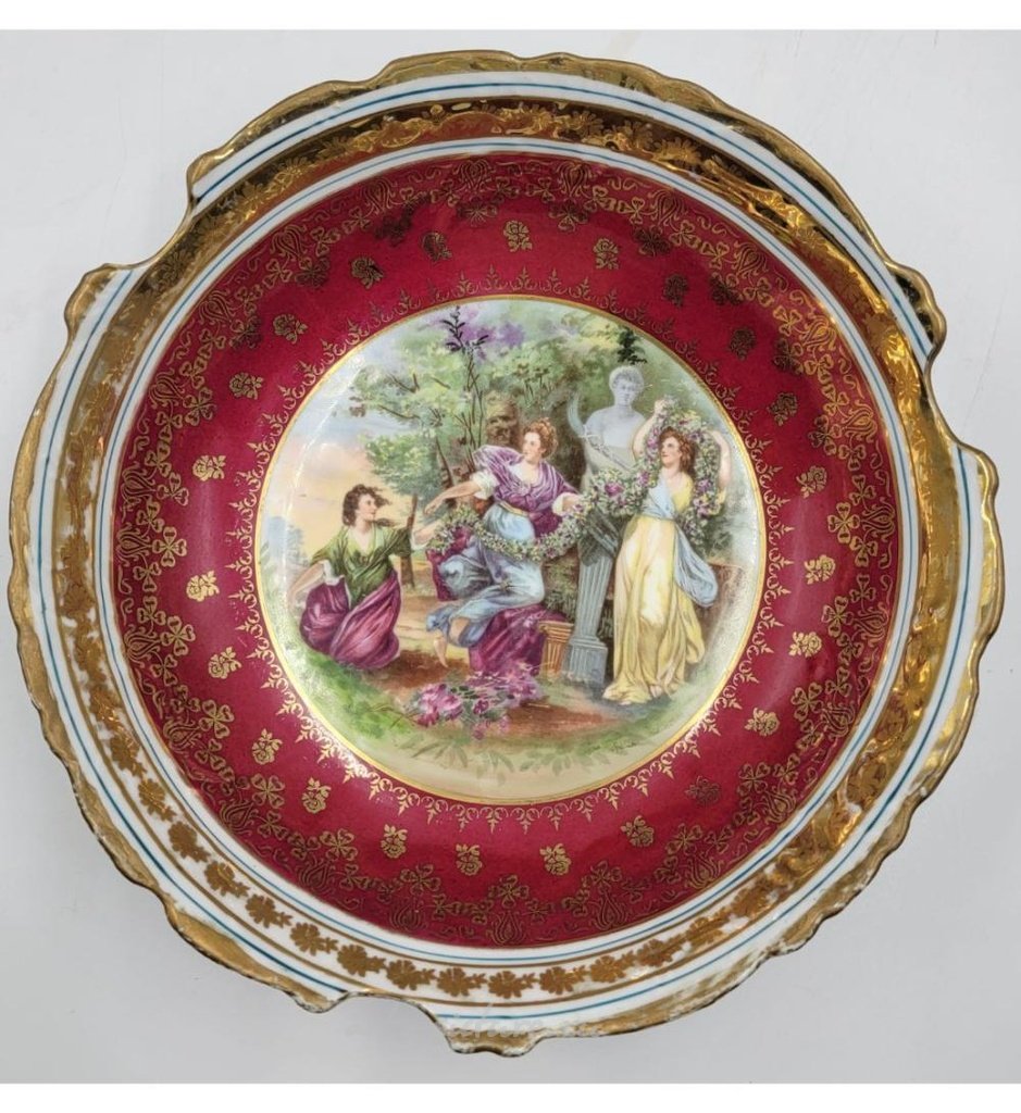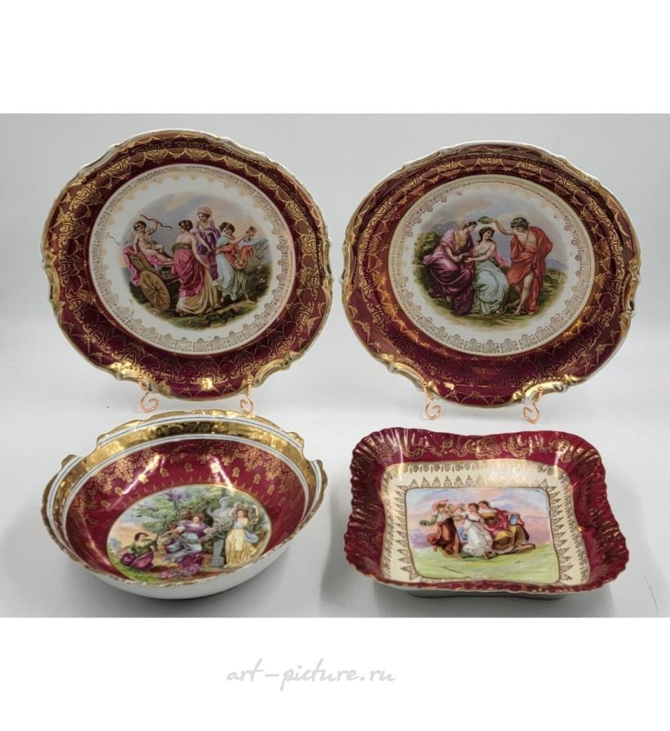 Сервиз из 4 королевских венских/австрийских чаш и мисок. Пара имеет диаметр 13 дюймов, квадратная миска - 9 3/4 дюйма x 2 дюйма, а чаша - 10 1/4 дюйма x 3 дюйма.