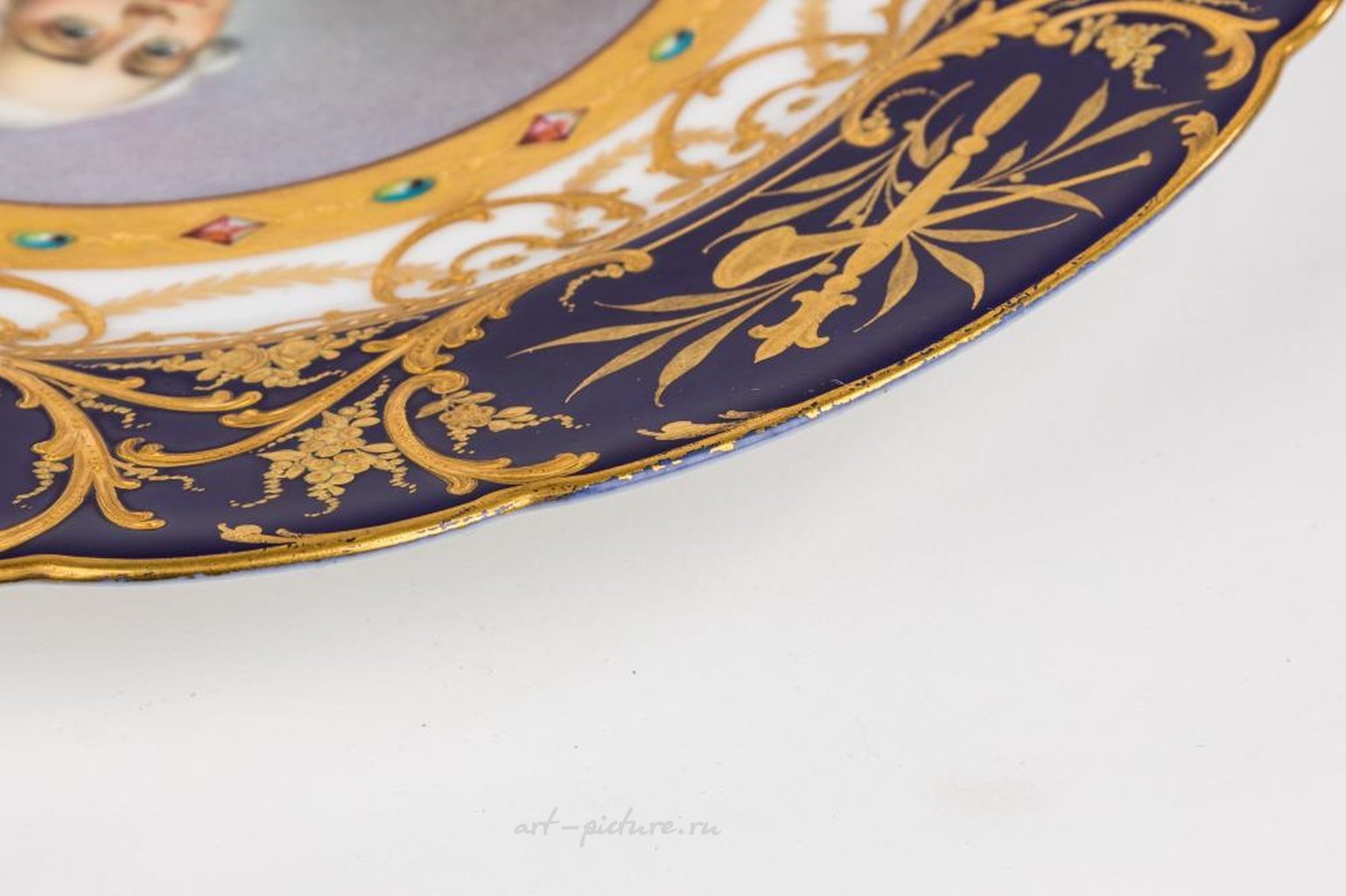 Королевский венский фарфор Луи XVI Севрская тарелка диаметром 10 дюймов с высококачественной золотой отделкой.