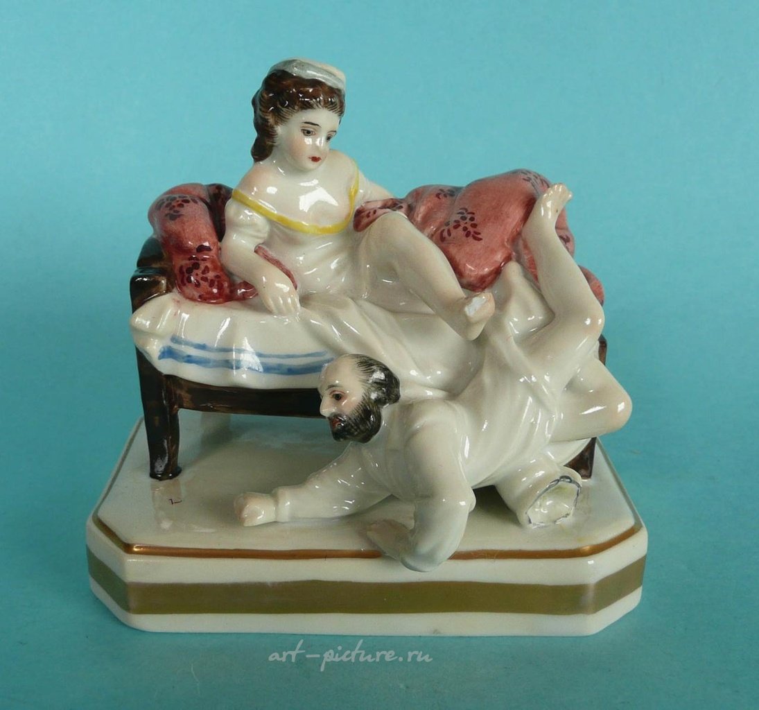 Фарфоровая скульптура: Royal Vienna фарфоровая скульптура, изображающая мужчину, выталкивающегося из кровати.