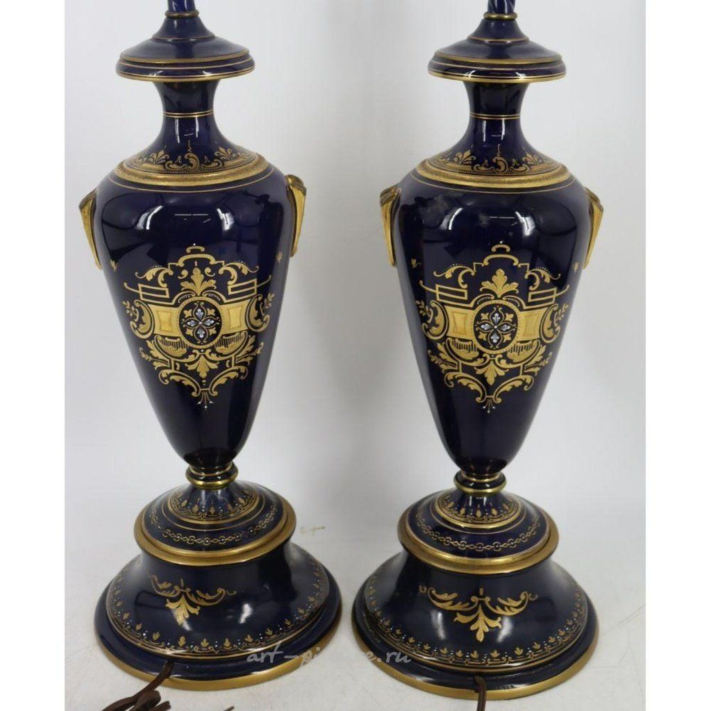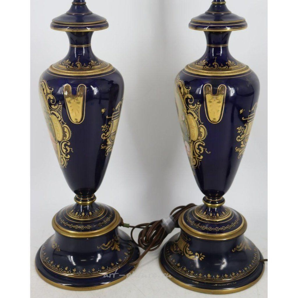 Подпись "C. Heer". Каждая лампа изображает портреты прекрасных женщин. Возможны восстановление или повреждения в области ручек. Из поместья в Хоторне, штат Нью-Йорк.
