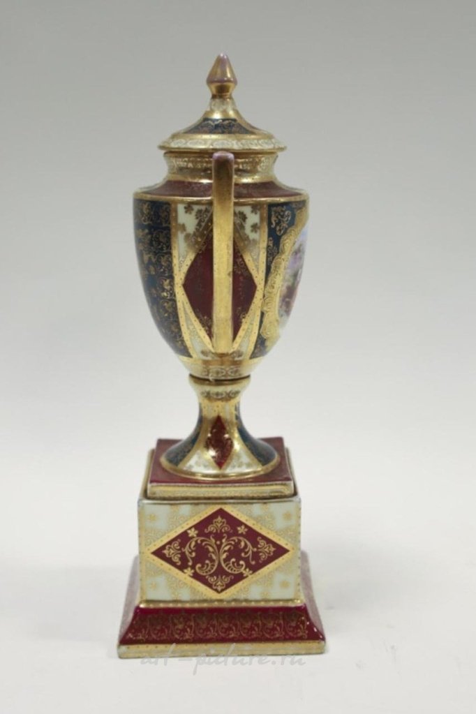 Фаянсовый кубок с портретом, изготовленная в Королевской Венеции, имеет высоту 12 дюймов и маркировку улья. Кубок находится в хорошем состоянии, но имеет следы потертой краски и золота.