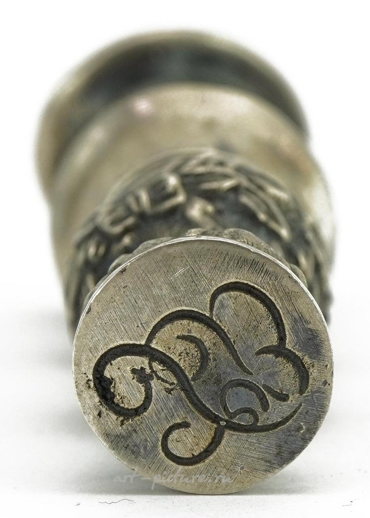 Серебряная печать для письменного стола в форме русского офицера в форме, украшенная рубином и прозрачными камнями, имеет отпечатки русских марок, высотой 8 см, весом 120,0 г. Для получения дополнительной информации об этом лоте, пожалуйста, свяжитесь с аукционером.