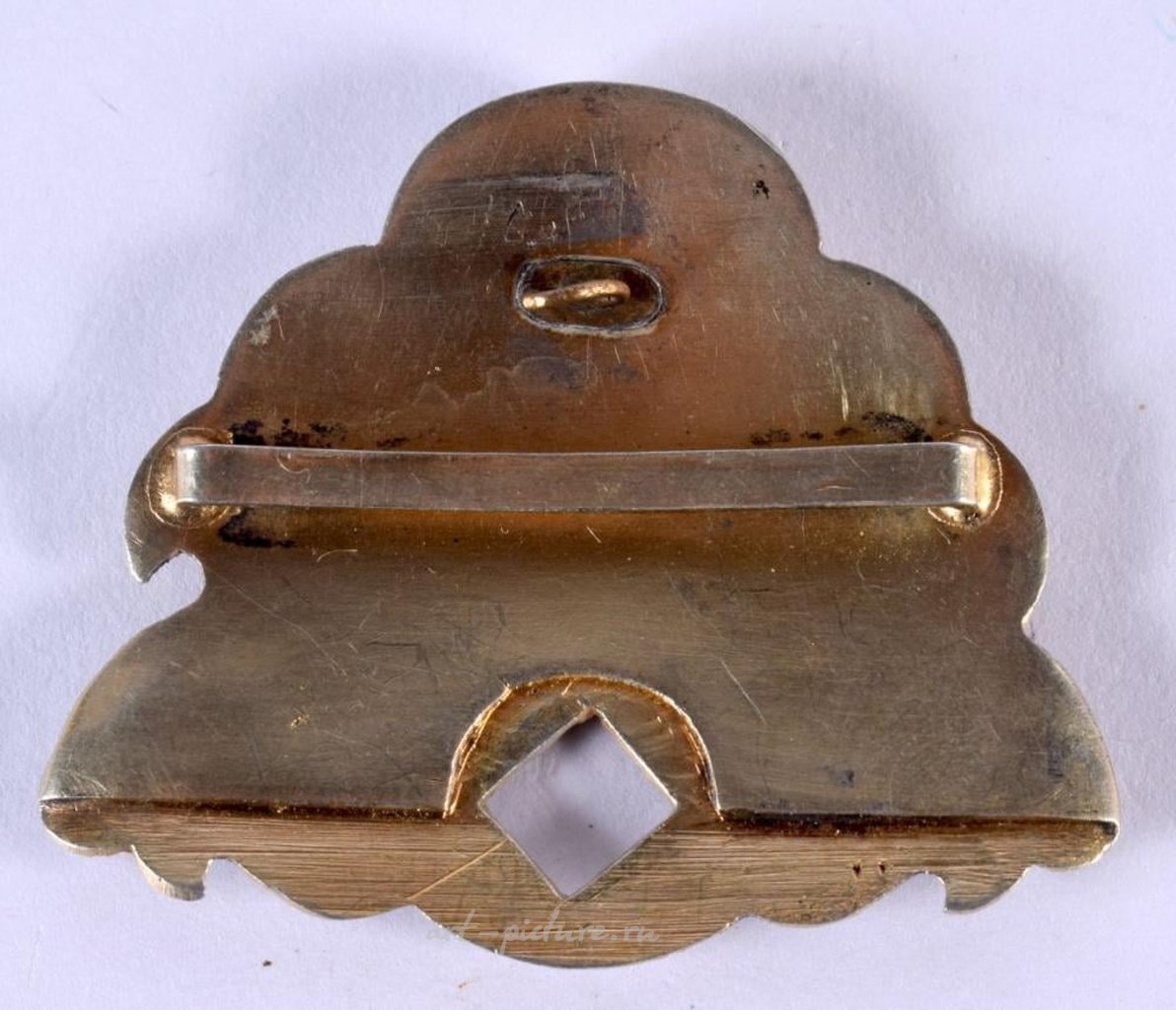 Изделие из серебра и эмали в стиле антиквариата. Весит 27,6 грамма. Размеры составляют 5,5 см x 6,5 см.