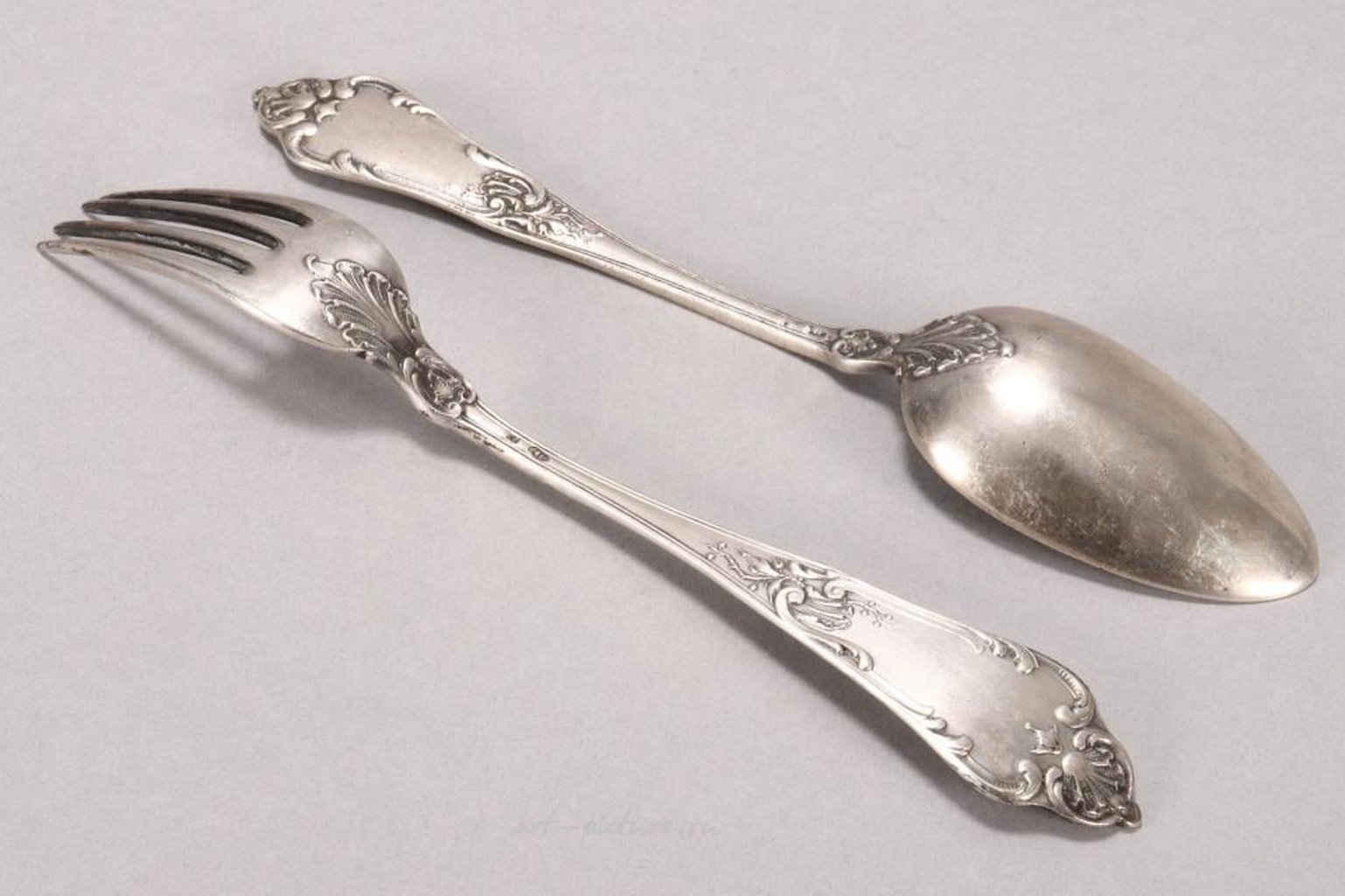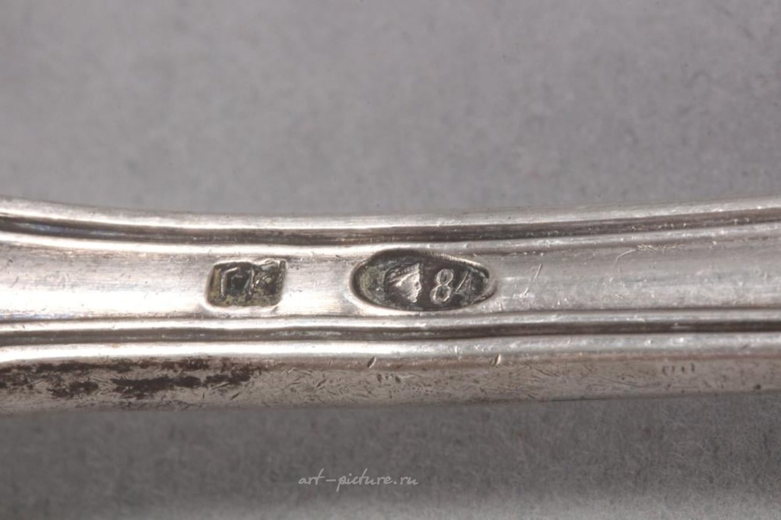 Ложки с маркировкой, Москва, 84, И.К., с ручками в форме картуша, украшенными раковинами, завитками и цветочным орнаментом, общий вес 3185 г (17)