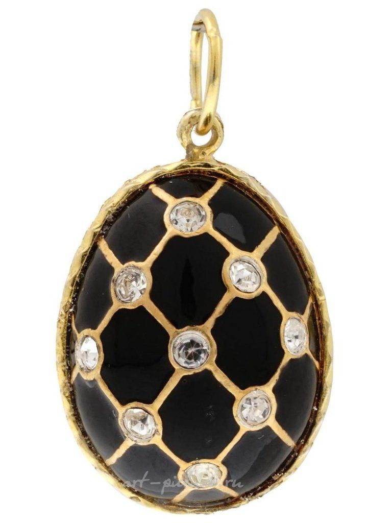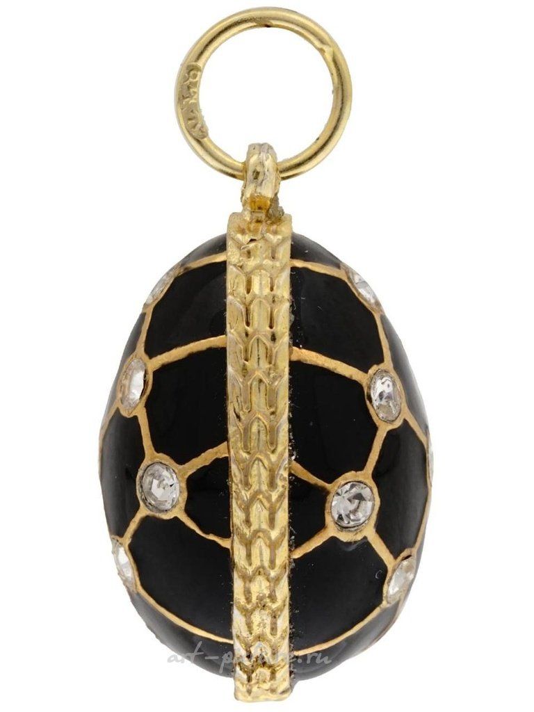 Подвеска в форме яйца из русского серебра 84 пробы с позолотой и эмалью. Подвеска украшена бриллиантами и покрыта черной эмалью. Корпус украшен гравированным узором из плетенки. Помечена стандартной русской пробирной маркой и другими кириллическими и пробирными марками на петле. Вес составляет 6,7 грамма. Русское серебро и ювелирные изделия с натуральными камнями для коллекционеров.