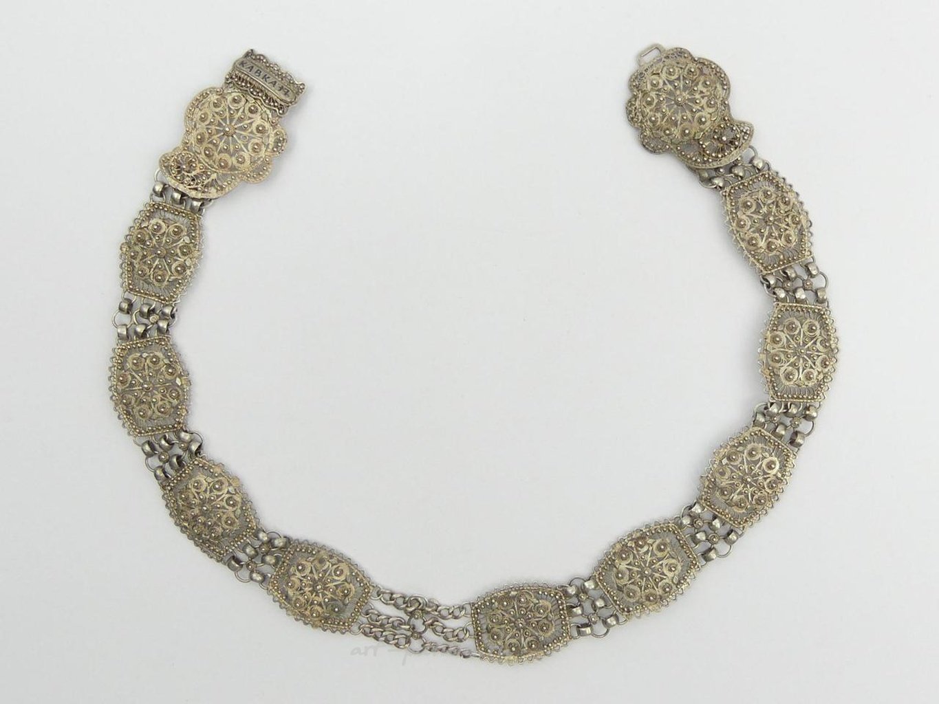 Старинный пояс из русского серебра филигранной работы, 133 грамма. 62 х 4 см