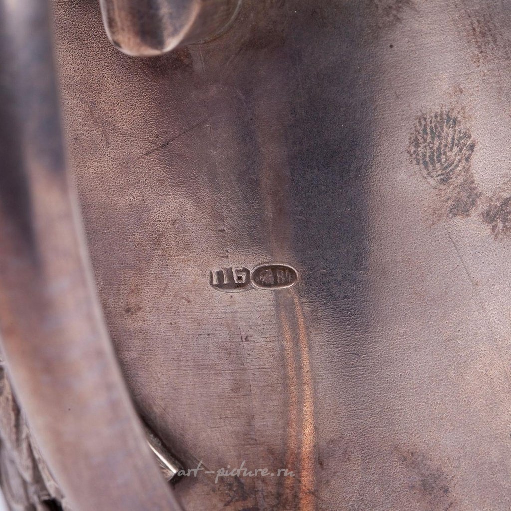 Презентационный подстаканник из русского литого серебра с позолотой "Зимняя тройка". Марка Петра Баскакова. Москва, 1908-1917. Вес: 224 г. Размеры: 13,7 х 8,7 х 8,7 см.