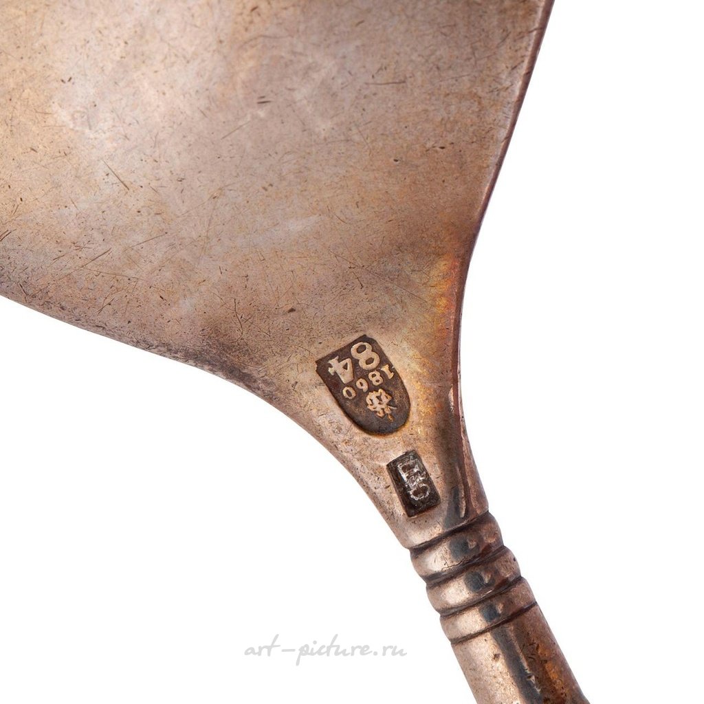 Русская серебряная золоченая ложка для варенья. Мастерская С. Павлова. Москва, 1860 год. Длина: 15,2 см. Вес: 62,4 г.