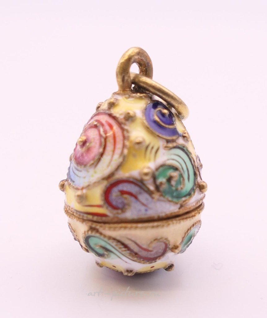 Русская серебряная эмальная подвеска в форме яйца. Высотой 2 см.