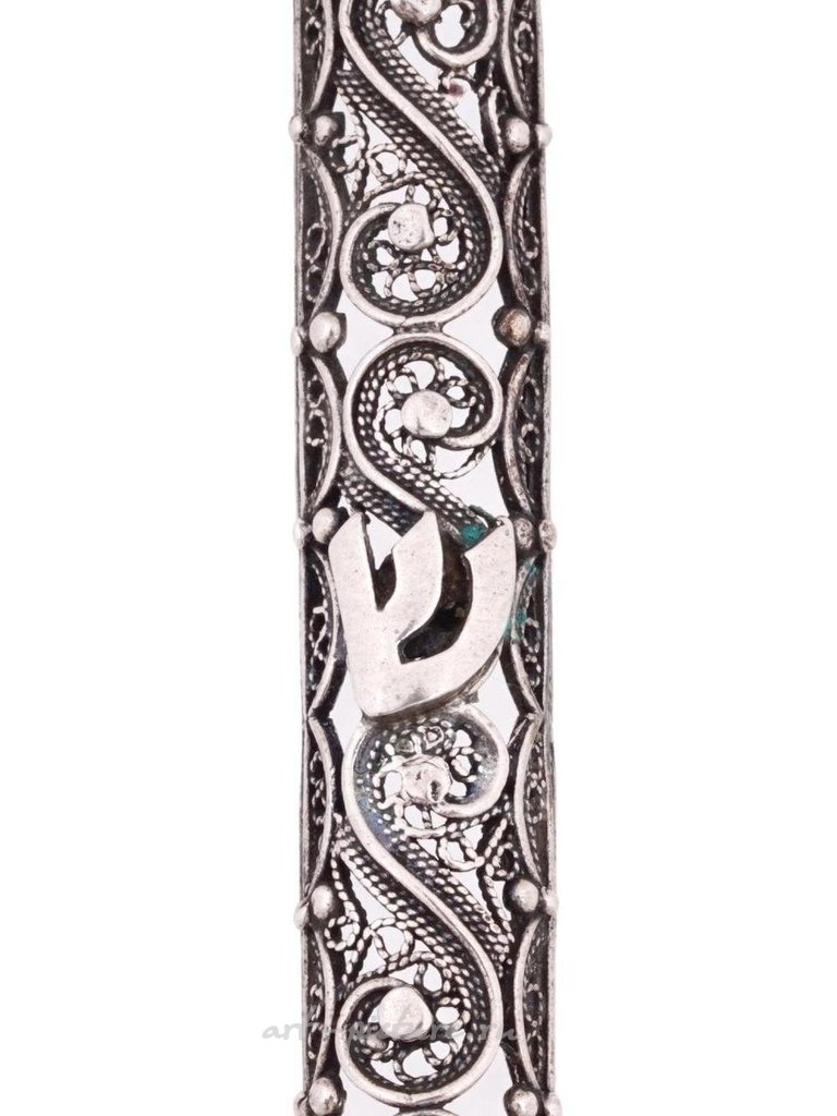Антикварный и винтажный комплект Judaica, включающий серебряный кубок Kiddush, украшенный перекрещивающимися лентами по краю и отмеченный русской пробой серебра и марками производителя, серебряная мезуза, изготовленная в технике репульсированного следа, и серебряный указатель Торы с проколотой рукояткой и палкой, украшенной переплетающимся узором, помеченный пробой серебра 925. Общий вес: 82 г. Антикварные и винтажные коллекционные предметы Judaica.