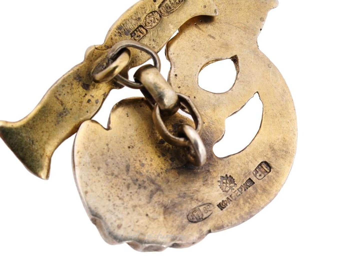 Глаза рыб украшены кабошонами из зеленого нефрита. На каждом изделии есть клеймо стандарта серебра 88 пробы и отметки изготовителей на обратной стороне. Общий вес: 23 грамма. Русские Ювелирные Изделия, Столовое Серебро И Предметы Коллекционирования.