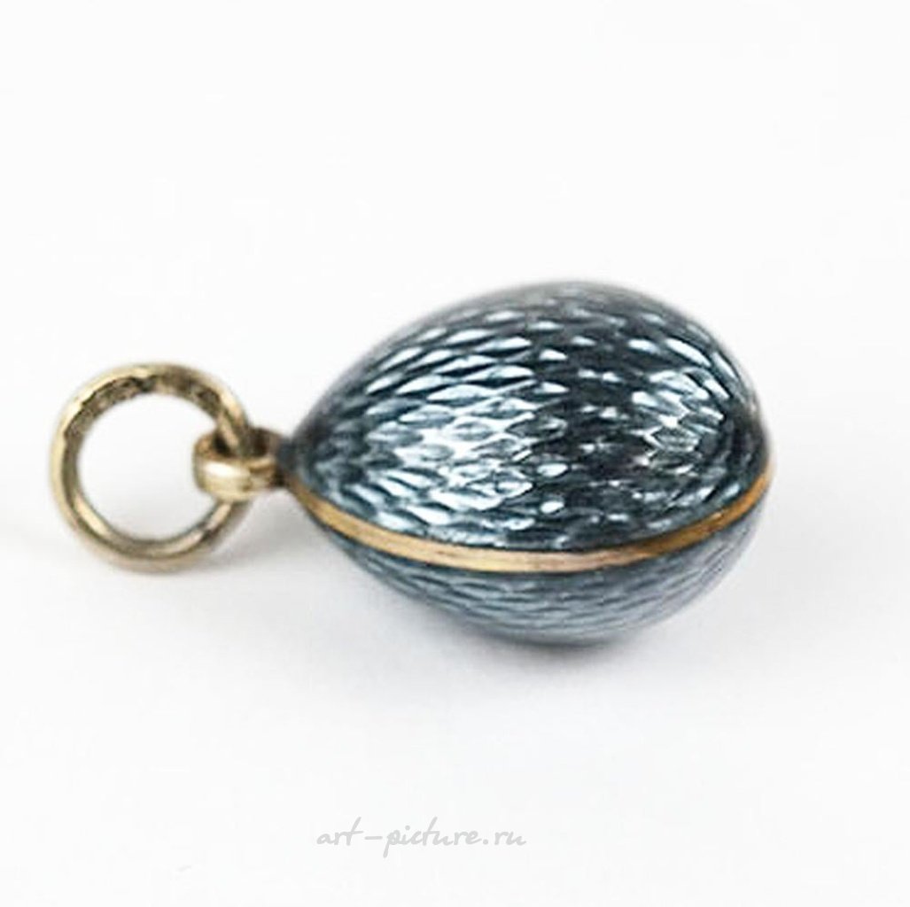 Русская серебряная подвеска в форме яйца с голубой гильошированной эмалью. [Общая длина: 7/8 дюйма].
