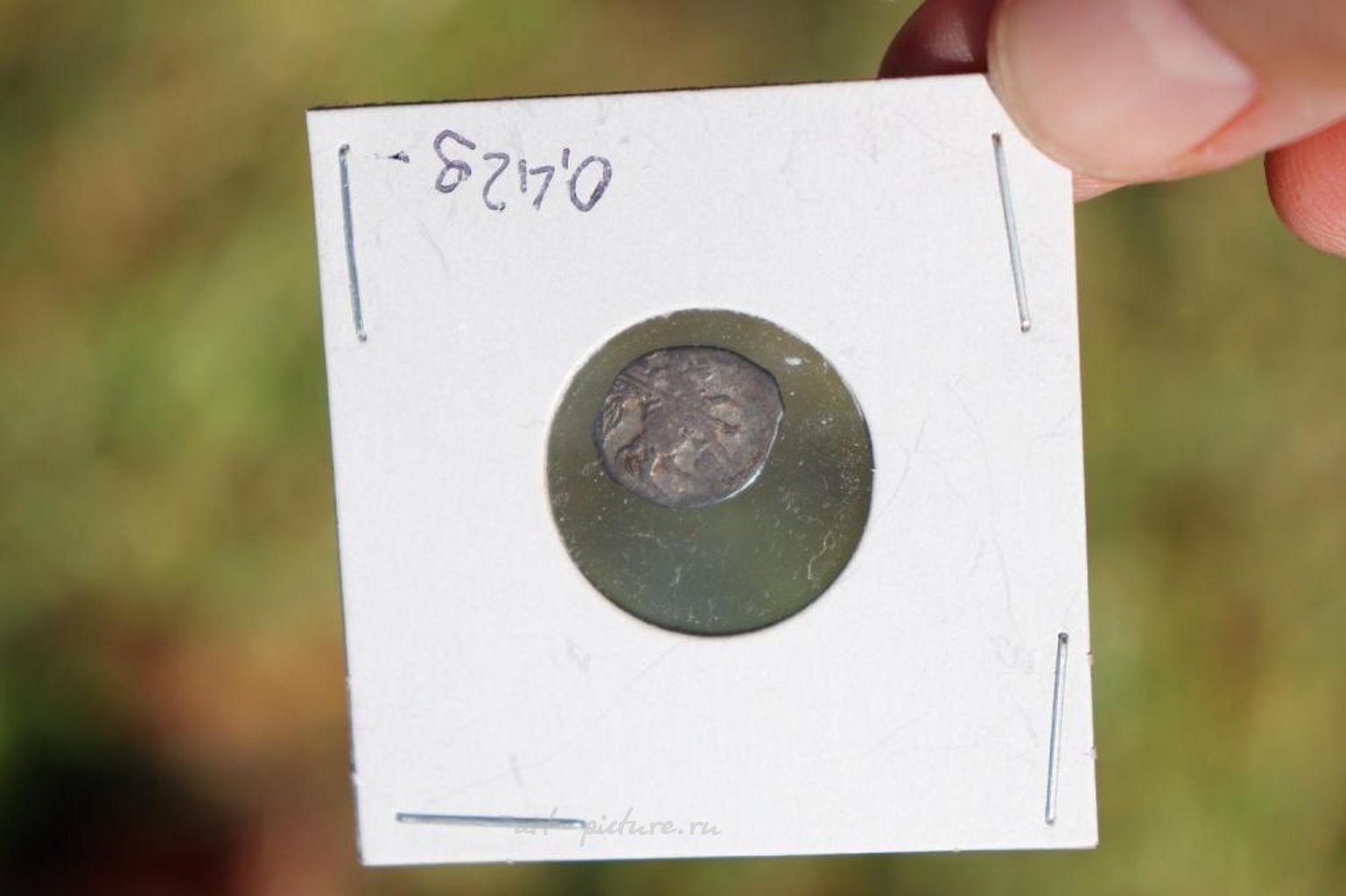 Русская серебряная копейка, Иван IV, "Грозный". 1540-е годы. "Проволочные деньги", 0,42 г. Эта монета является подлинной серебряной копейкой, выпущенной во время правления Ивана IV, "Грозного". Часто называется "проволочными деньгами" из-за способа изготовления. Вес: 0,42 г; Размер: 13 мм х 10,5 мм; Аверс: Царь в образе Святого Георгия на коне, убивающего змея