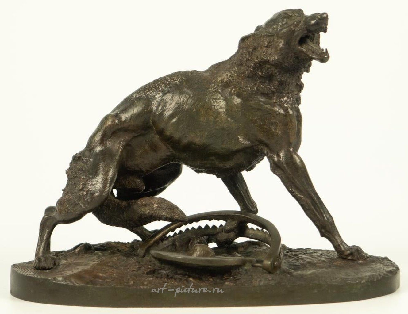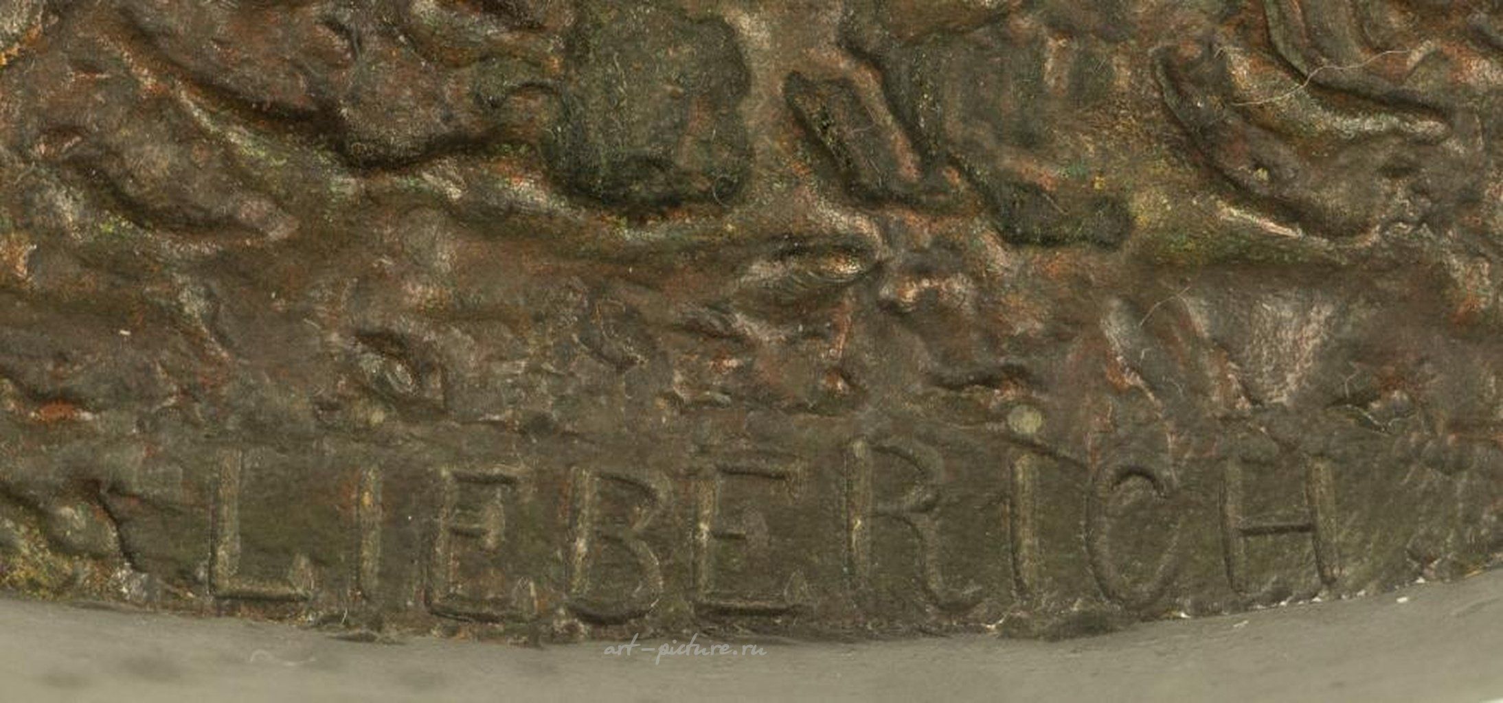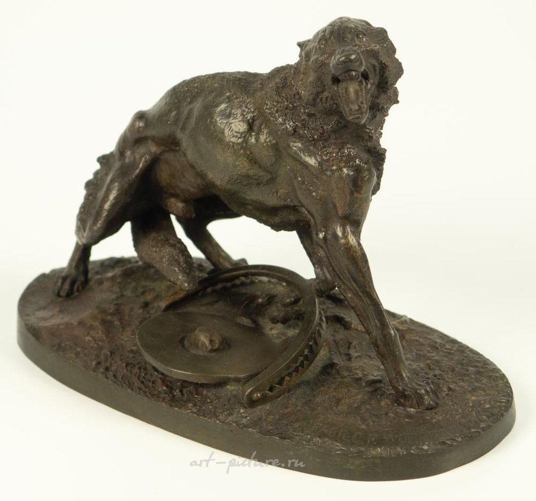 Россия, Санкт-Петербург, конец XIX века. Бронза, литье, патинирование. По модели Н. И. Либериха. Изготовлено на бронзовой фабрике К. Ф. Верфеля. Основано на надписи "ЛИБЕРИХ" и "Фабр. К. Ф. Верфель". Размеры: высота 15 см; основание 20,3 * 10,3 см.