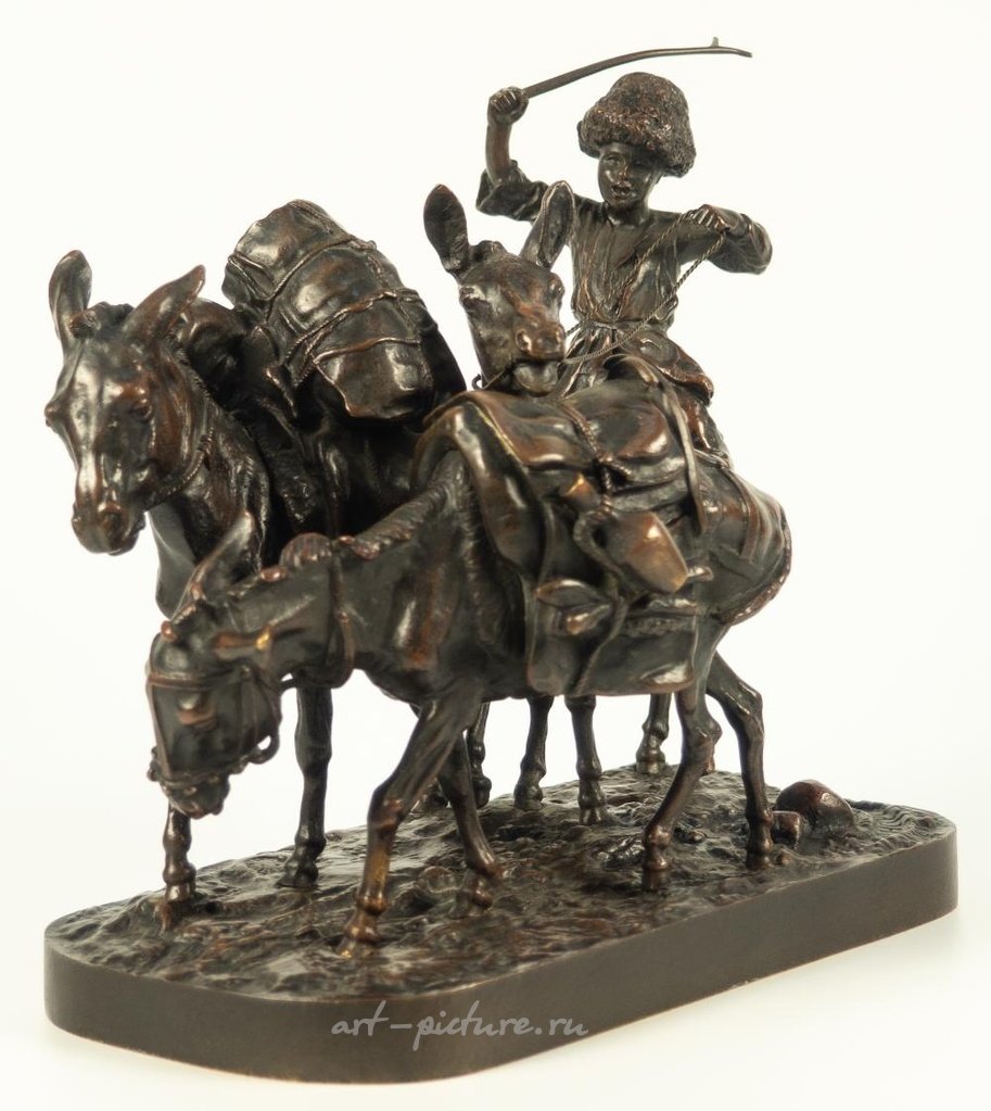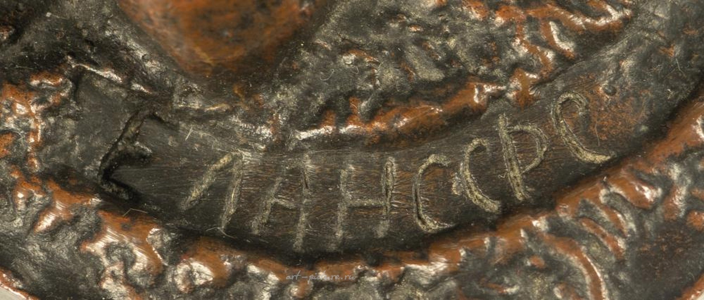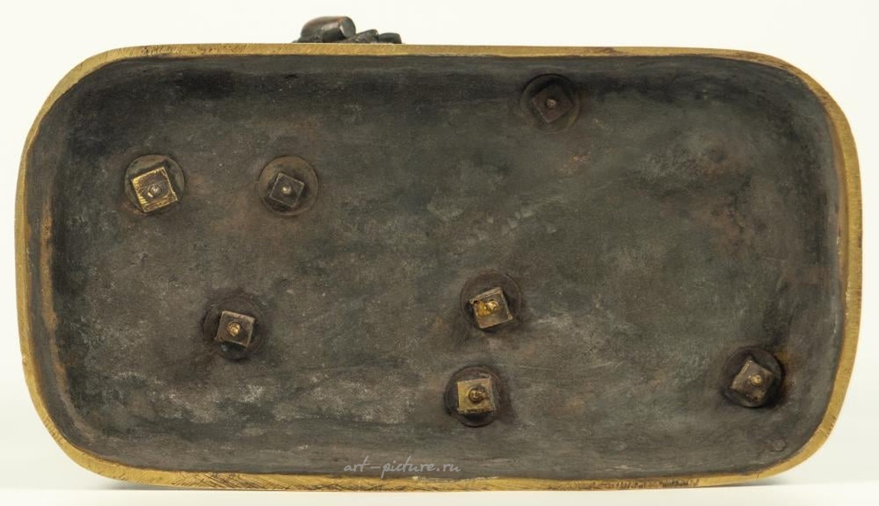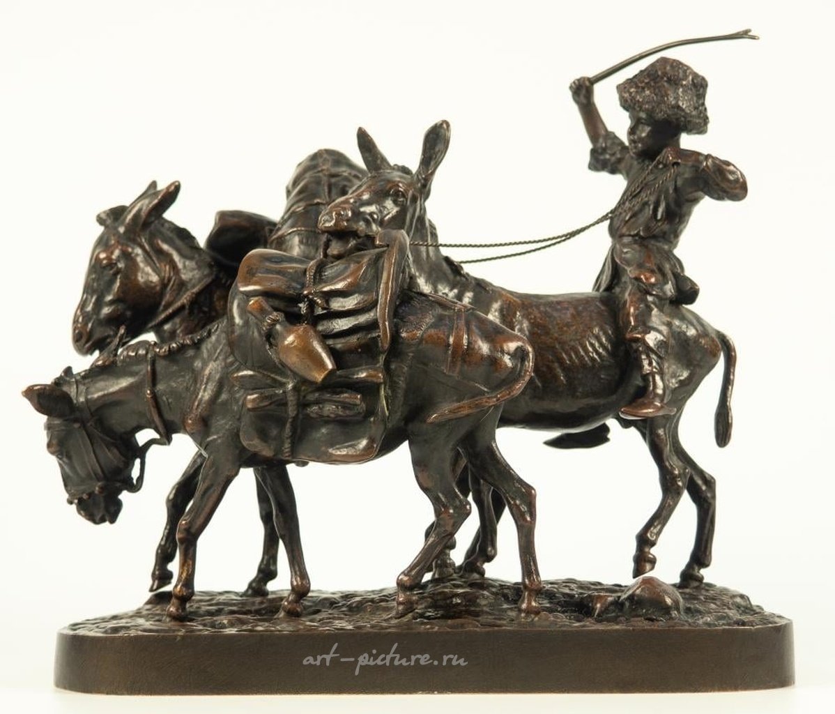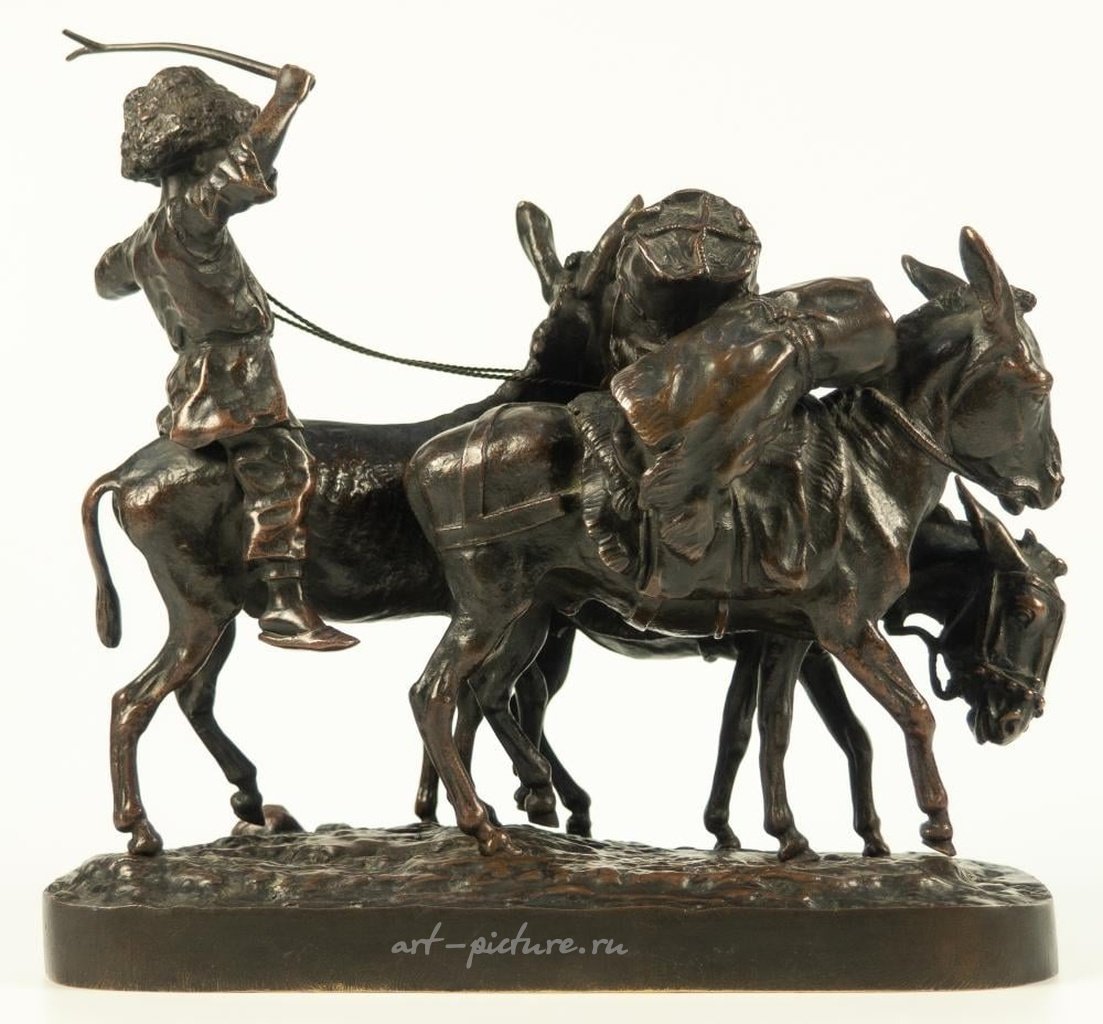 Литье, монтаж, патинирование. Основано на модели Е. А. Лансера. Россия, конец 19 века. На основании имеется надпись "Е. Лансере" и марка "ЛШ". Размеры: высота 20 см; основание 11,5*22 см.