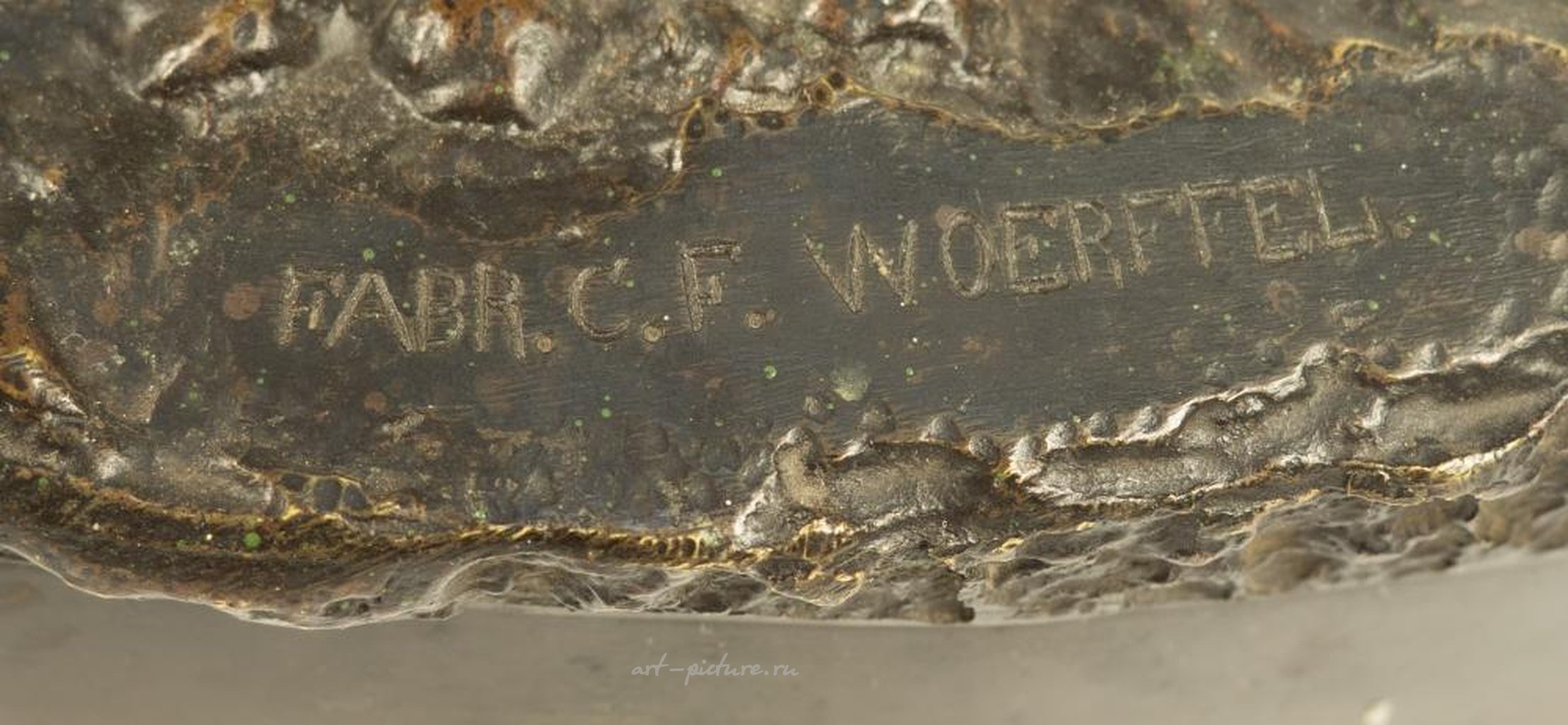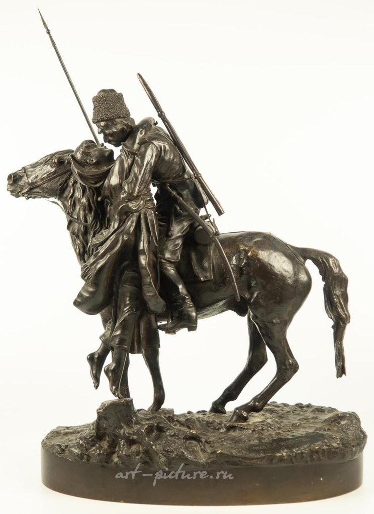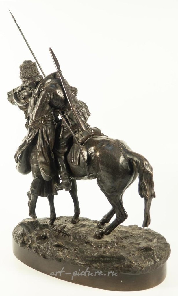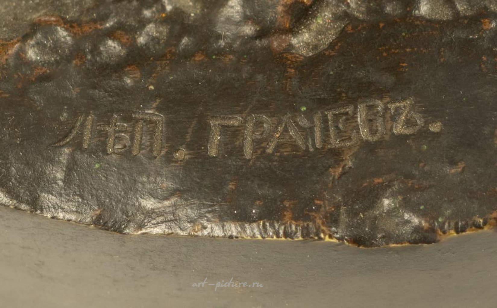 Россия, Санкт-Петербург, 1880 год. Бронза, литье, патина. Основано на модели В.Я. Грачева. Отлито на бронзовой фабрике К.Ф. Верфель. На основании надписи "Леп. Грачев" и "Фабр. К.Ф. Верфель". Размеры: высота 39 см; основание 32*18 см.