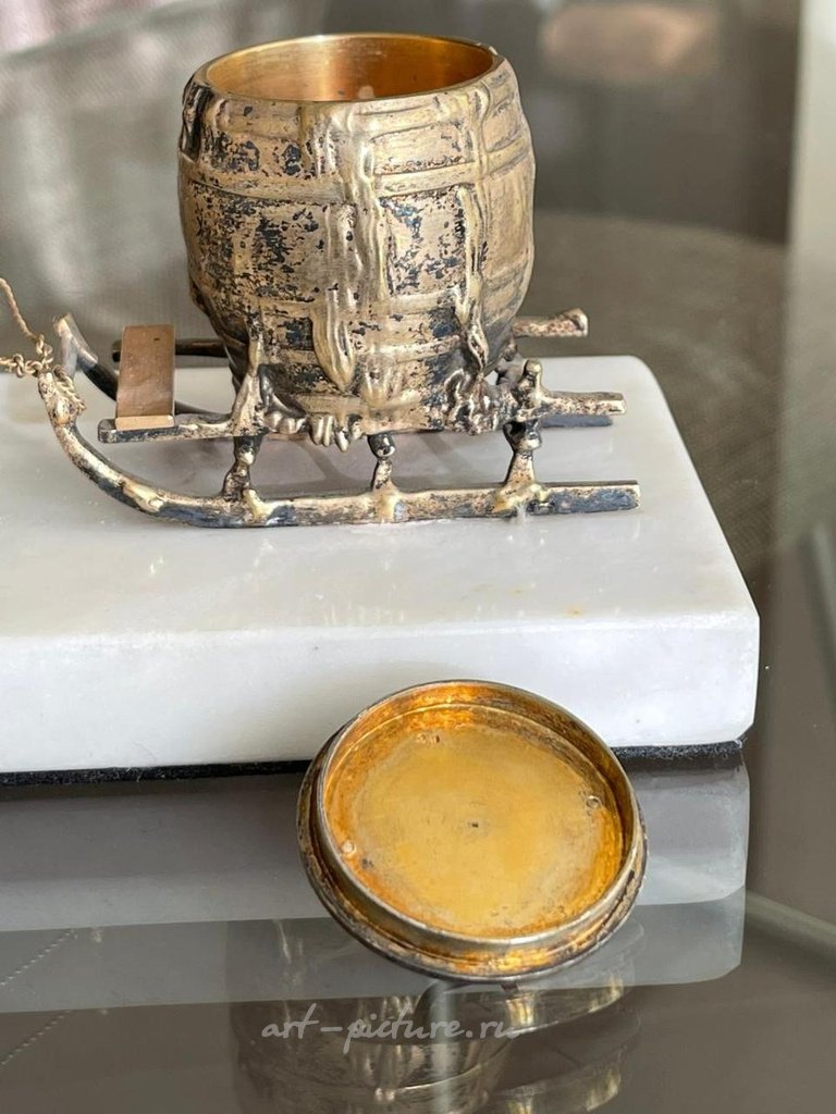 Подставка, кажется, была заменена новой. Немного шатается на ножке. Подпись. Длина 17 см. Высота 15 см. Ширина 10 см. Россия, 19 век.