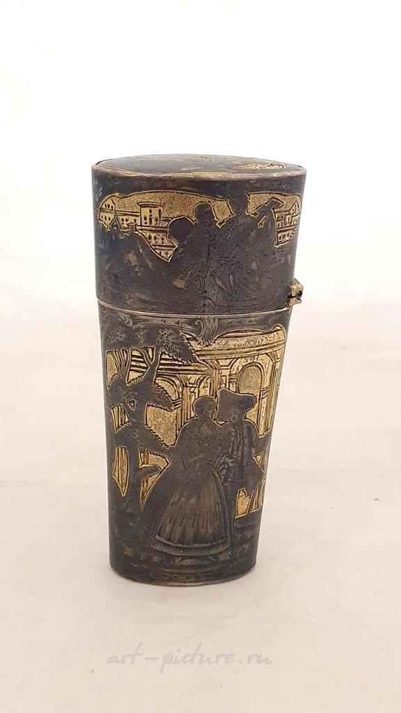 Красивая работа ниелло со всех сторон, корпус открывается и закрывается отлично, отмечено, общий вес 125 г - высота 10 см.
