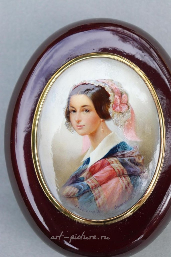 Александра Россет-Смирнова (1809-1882), русская лаковая миниатюра Федоскино, выполненная художником Борисовой, сертифицированная. Высококачественный миниатюрный портрет. Александра Осиповна Смирнова (русский: Александра Осиповна Смирнова, урожденная Россет, также известная как Смирнова-Россет; 6 марта 1809 года в Одессе, Россия).