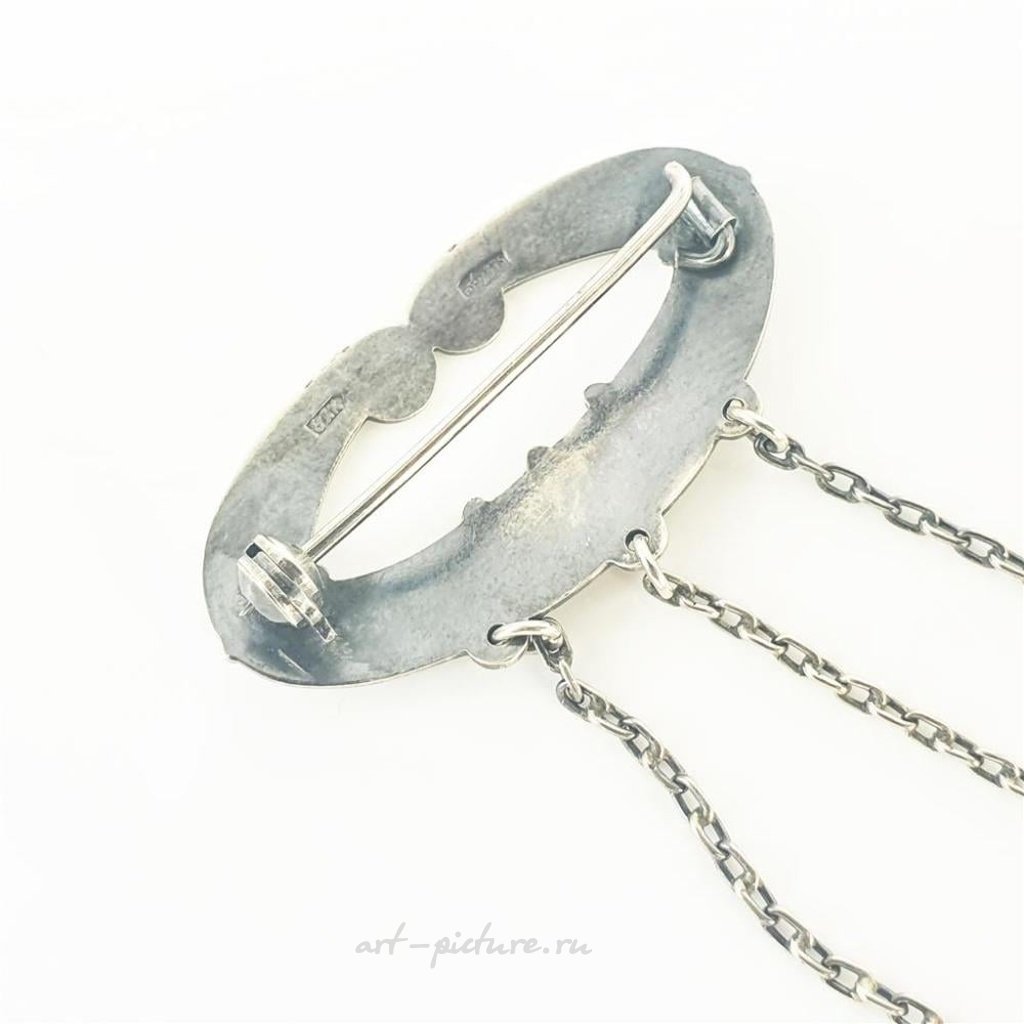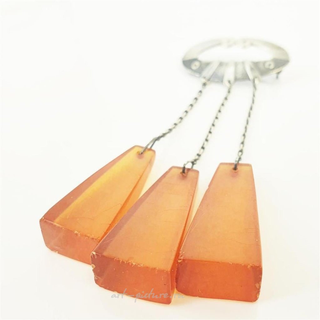 Винтажная русская серебряная брошь с янтарем. Вес 11,9 грамма.