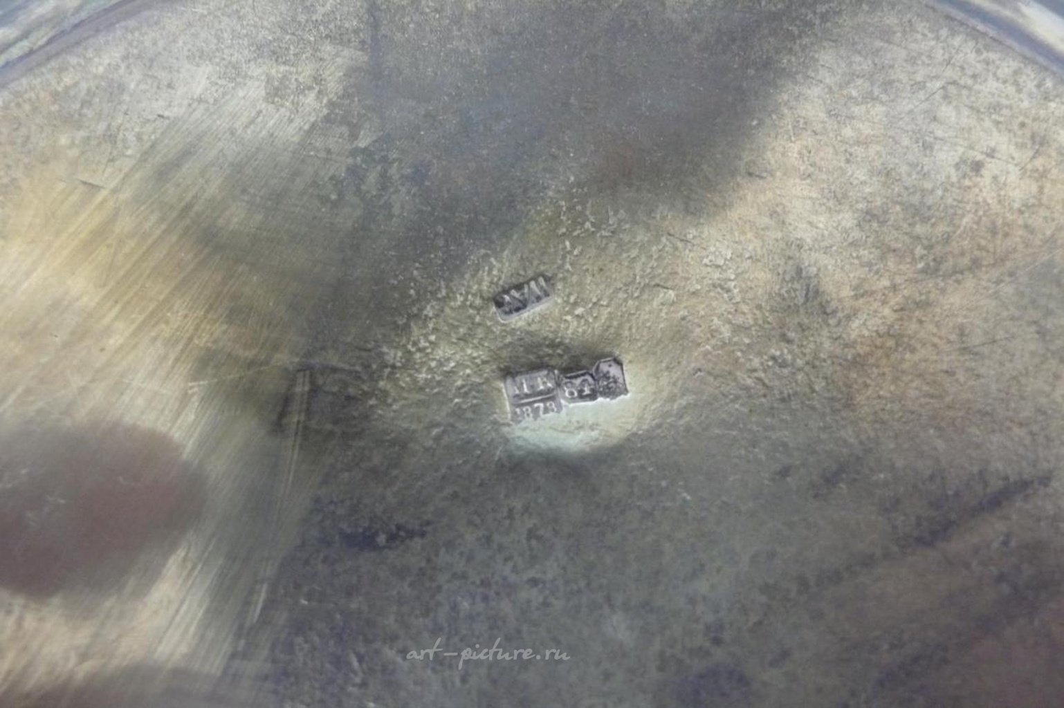 Русский серебряный круглый небольшой поднос с гравировкой - диаметр 6,25 дюйма - 4,75 унций.