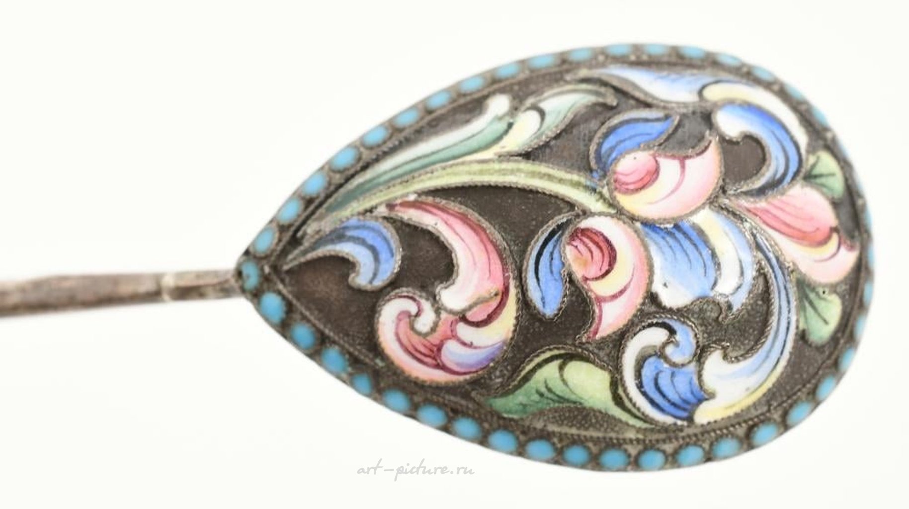 Две русских серебряных и эмалированных ложки конца XIX века, каждая помечена "84", длиной 6 дюймов (наибольшая).